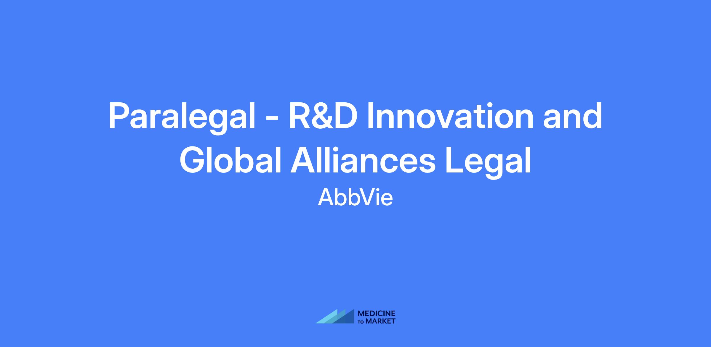 Paralegal to join the R&D Innovation and Global Alliances (RDGA) Legal team, supporting AbbVieโs R&D organization by advising on strategies to accelerate development, engaging with government authorities, and working with collaboration partners. Role suitable for proactive problem-solvers who can work independently; experience managing contracts and engagements with regulatory and healthcare authorities is preferred. Hybrid role with at least three days onsite in North Chicago, IL.
