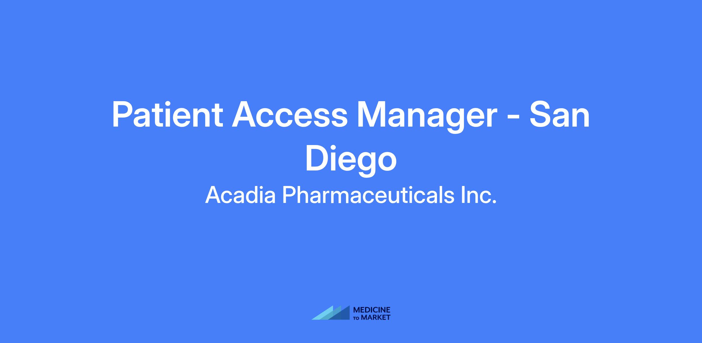 Patient Access Manager (PAM) at Acadia, a key field-based expert supporting healthcare providers in navigating access and reimbursement for therapies. Acts as a liaison among healthcare providers, specialty pharmacies, payers, patients, hub services, and internal cross-functional teams to remove barriers to care in the assigned geographic territory. This is a non-promotional role requiring frequent travel.