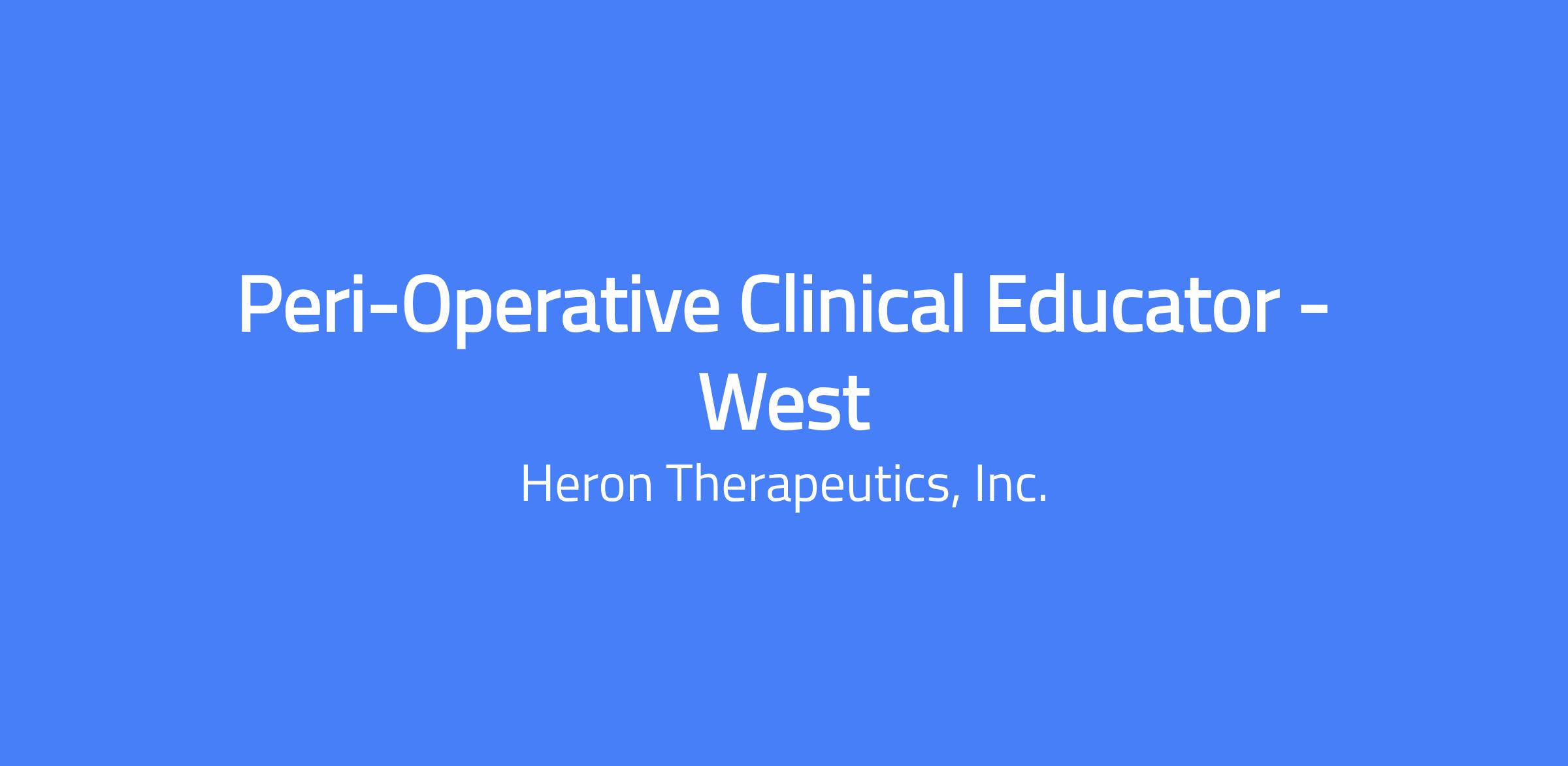 The Peri-Operative Clinical Educator (POCE) educates surgeons, peri-operative staff, and distributor partners on the preparation and administration of Heron’s Acute Care products in hospitals (inpatient and outpatient) and ambulatory surgery centers (ASCs). The role supports initial usage and expansion in hospitals and IDNs where approved but not consistently used and partners with internal stakeholders to build relationships with surgeons and peri-operative staff to drive adoption. Reports to the Regional Business Manager.