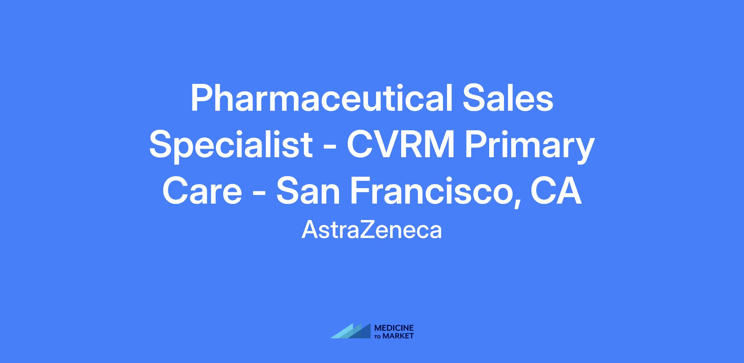 Pharmaceutical Sales Specialist for the Primary Care Team, focusing on CVRM in a San Francisco, CA area. You’ll translate scientific capabilities into meaningful patient and healthcare professional impact, following Brand Strategy and AZ Selling Model.