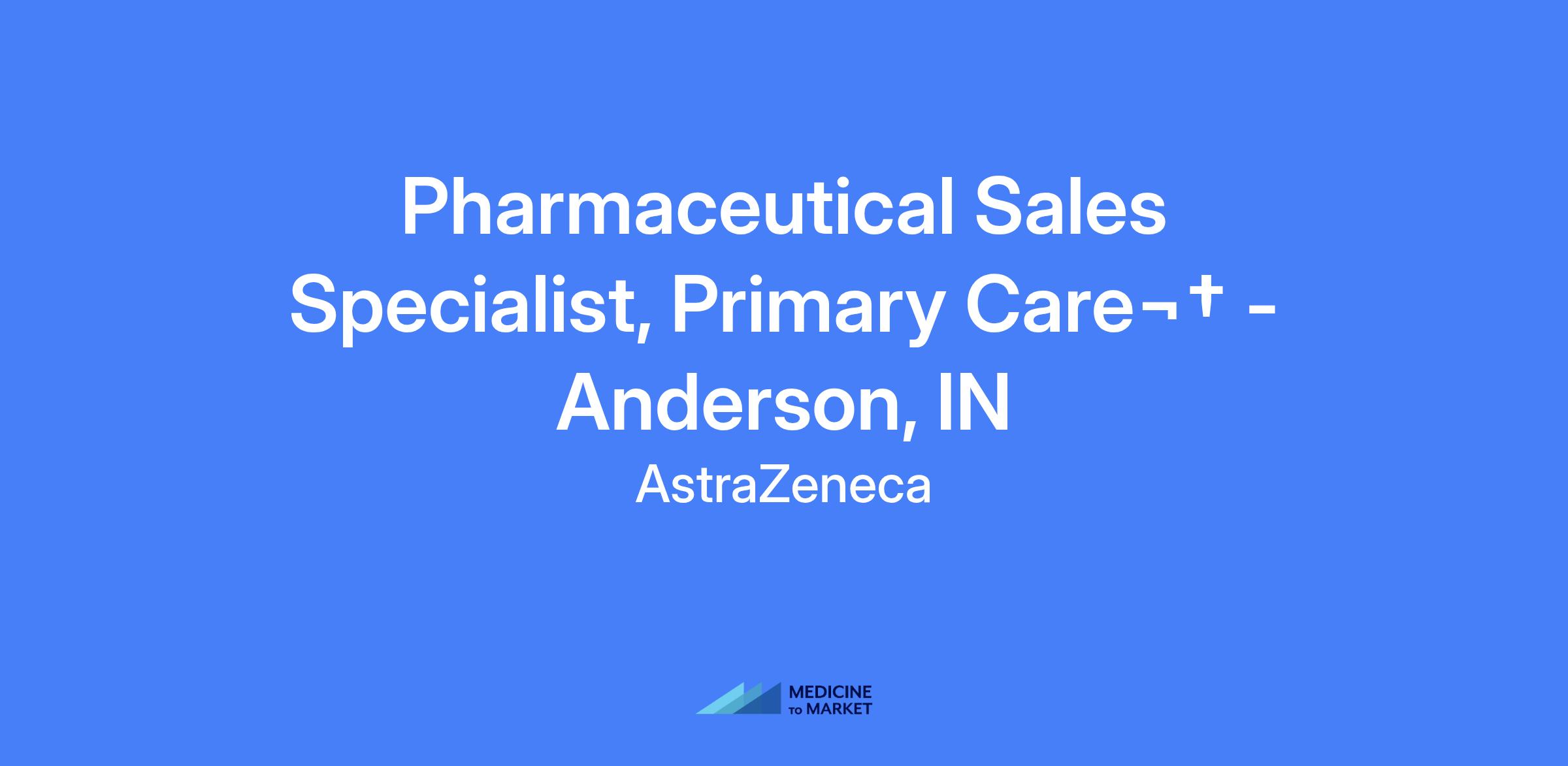 Pharmaceutical Sales Specialist, Primary Care in Anderson, IN. Responsible for launching a best-in-class hypertension asset within the Primary Care Team and driving meaningful customer interactions through multiple channels, including digital platforms and face-to-face engagements.