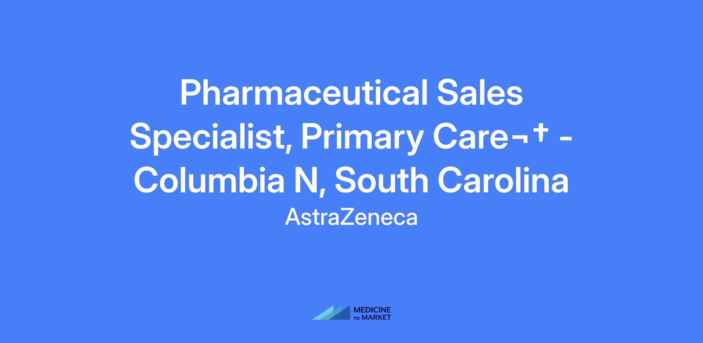 Pharmaceutical Sales Specialist, Primary Care – Columbia N, South Carolina. The role focuses on launching a best-in-class hypertension asset within the Primary Care Team, applying scientific capabilities to positively impact patient lives.