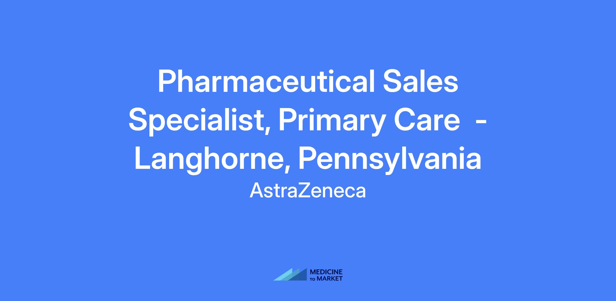 Pharmaceutical Sales Specialist, Primary Care  - Langhorne, Pennsylvania