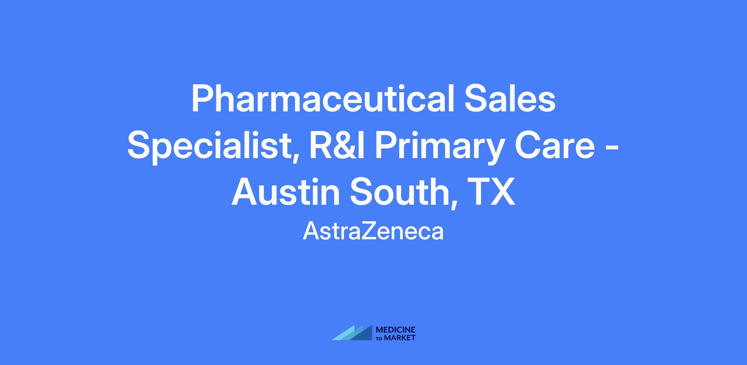 Pharmaceutical Sales Specialist for R&I Primary Care Team based in Austin South, TX. You will educate healthcare professionals on clinical evidence, approved indications, and product efficacy/safety to support on-label prescribing, while developing local strategy and building relationships to drive sales in the Buda, Bastrop, Hutto, and South Austin area. You will collaborate with district leadership to implement targeting plans and leverage formulary opportunities to increase territory performance.