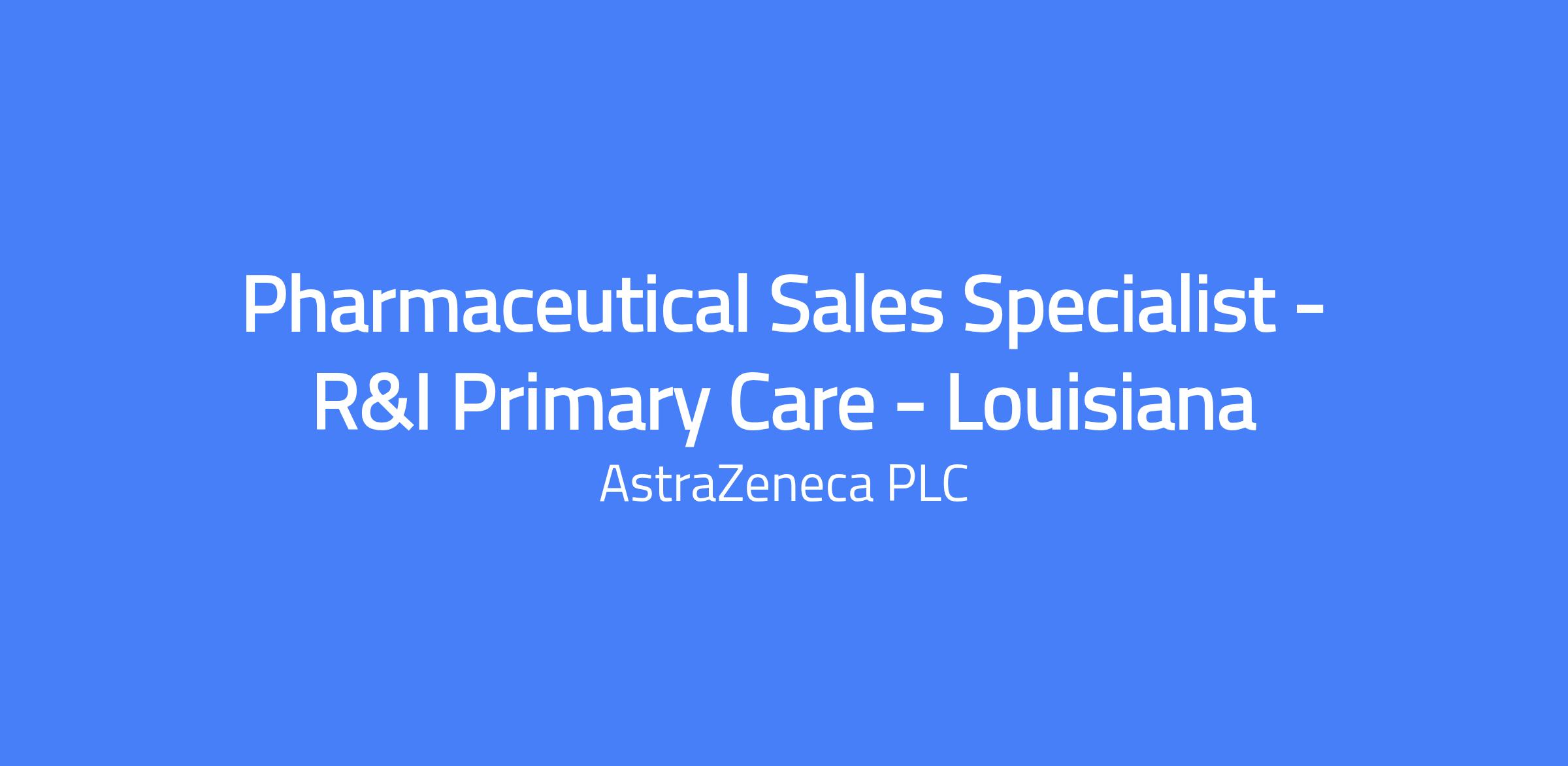 Pharmaceutical Sales Specialist - R&I Primary Care - Louisiana