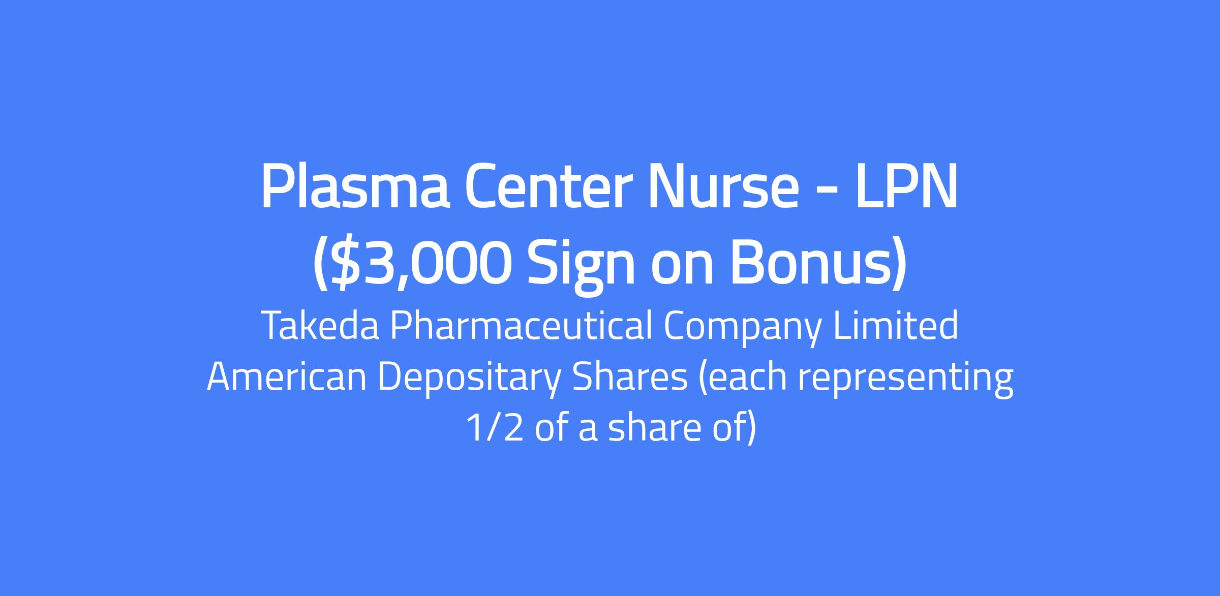 By clicking the âApplyâ button, I understand that my employment application process with Takeda will commence and that the information I provide in my application will be processed in line with Takedaâs Privacy Notice and Terms of Use. I further attest that all information I submit in my employment application is true to the best of my knowledge. Job Description Please take this virtual tour to get a sneak peek of one of our Plasma Donation Centers. About BioLife Plasma Services⯠Every day, the donors you meet will motivate you. The high-quality plasma you collect will become life-changing medicines. Here, a commitment to customer service and quality is expected. You will report to the Plasma Center Manager and will perform as a Medical Support Specialist (Plasma Center Nurse) to support plasma center operations.⯠BioLife Plasma Services is a subsidiary of Takeda Pharmaceutical Company Ltd.⯠About the role:⯠Every day, the donors you meet will motivate you. The high-quality plasma you collect will become life-changing medicines. Here, a commitment to customer service and quality is expected. You will determine donor eligibility to donate plasma, management of donor adverse events, review of laboratory test results, and donor notification of unsuitable test results. The Medical Support Specialist (Plasma Center Nurse) works under the guidance of the Center Manager (or Assistant Manager as applicable) for operational guidance and under the management of the Center Physician for medical issues. The Medical Support Specialist will be familiar with regulations of the plasma collection industry or a manufacturing environment. The Medical Support Specialist follows guidance provided by BioLife Medical Affairs and provides center level support of environmental, health and safety (EHS).⯠How you will contribute⯠You will determine donor eligibility; to include, proper management of informed consent, AIDS education and confidential self-exclusion, medical history interview and acceptance requirements, physical examination, blood testing, and reviewing Serological Protein Electrophoresis (SPE).⯠You will evaluate donor reaction(s), which occurs at the facility as outlined in the SOPs. Follow applicable SOPs for medical emergencies including the development of Center Physician's standing orders and donor transport to emergency care facilities.⯠You will refer to the Center Physician or Medical Affairs (as applicable) when in need of providing unacceptable findings to donors, or guidance concerning medical or technical issues, including donor safety and eligibility.⯠You will support the Hepatitis B and Seasonal Flu vaccination programs for employees as applicable.⯠You will manage employee incidents and determine whether further evaluation is required by occupational health/ER. Refer to EHS guidance regarding employee incidents.⯠You can be a Pandemic Coordinator when authorized by EHS and support investigations associated with pandemic threats within the local community as indicated by EHS or Medical Affairs.⯠What you bring to Takeda:⯠High school diploma or equivalent to including graduate equivalent of a recognized educational nursing program with state requirements⯠Currently licensed or certified in the state where responsibilities will be assigned: LPN or LVN Current Cardiopulmonary Resuscitation (CPR) and AED certification⯠Fulfill state requirements (in state of licensure) for basic IV therapy⯠Satisfactorily complete the FDA approved training requirements for BioLife Medical Support Specialist⯠Two years in a clinical or hospital setting⯠What Takeda can offer you:⯠Every day at Takeda, we feel good knowing that what we do helps improve the lives of patients with rare diseases.â¯â¯ At BioLife, while you focus on our donors, we will support you. We offer a purpose you can believe in, a team you can count on, opportunities for career growth, and a comprehensive benefits program to include medical/dental, paid time off and retirement benefits, all in a fast-paced, friendly environment.⯠More about us:⯠At Takeda, we are transforming patient care through the development of novel specialty pharmaceuticals and best in class patient support programs. Takeda is a patient-focused company that will inspire and empower you to grow through life-changing work.⯠Certified as a Global Top Employer, Takeda offers stimulating careers, encourages innovation, and strives for excellence in everything we do. We foster an inclusive, collaborative workplace, in which our teams are united by an unwavering commitment to bring Better Health and a Brighter Future to people around the world.⯠BioLife Compensation and Benefits Summary We understand compensation is an important factor as you consider the next step in your career. We are committed to equitable pay for all employees, and we strive to be more transparent with our pay practices. For Location: USA - MA - West Springfield U.S. Hourly Wage Range: $26.88 - $36.96 The estimated hourly wage range reflects an anticipated range for this position. The actual hourly wage offered may depend on a variety of factors, including the qualifications of the individual applicant for the position, years of relevant experience, specific and unique skills, level of education attained, certifications or other professional licenses held, and the location in which the applicant lives and/or from which they will be performing the job.⯠The actual hourly wage offered will be in accordance with state or local minimum wage requirements for the job location. U.S. based employees may be eligible for short-term incentives. U.S. based employees may be eligible to participate in medical, dental, vision insurance, a 401(k) plan and company match, short-term and long-term disability coverage, basic life insurance, a tuition reimbursement program, paid volunteer time off, company holidays, and well-being benefits, among others. U.S. based employees are also elig