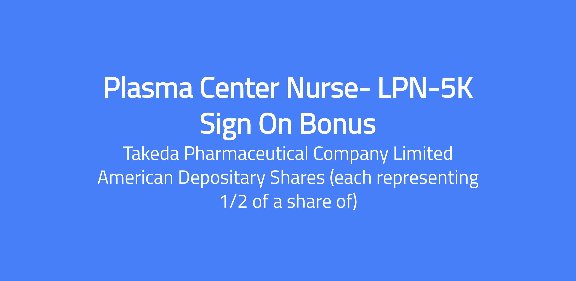 By clicking the âApplyâ button, I understand that my employment application process with Takeda will commence and that the information I provide in my application will be processed in line with Takedaâs Privacy Notice and Terms of Use. I further attest that all information I submit in my employment application is true to the best of my knowledge. Job Description Please take this virtual tour to get a sneak peek of one of our Plasma Donation Centers. ***This is a Full Time Position*** This position is eligible for a $5000 Sign on Bonus! About BioLife Plasma Services⯠Every day, the donors you meet will motivate you. The high-quality plasma you collect will become life-changing medicines. Here, a commitment to customer service and quality is expected. You will report to the Plasma Center Manager and will perform as a Medical Support Specialist (Plasma Center Nurse) to support plasma center operations.⯠BioLife Plasma Services is a subsidiary of Takeda Pharmaceutical Company Ltd.⯠About the role:⯠Every day, the donors you meet will motivate you. The high-quality plasma you collect will become life-changing medicines. Here, a commitment to customer service and quality is expected. You will determine donor eligibility to donate plasma, management of donor adverse events, review of laboratory test results, and donor notification of unsuitable test results. The Medical Support Specialist (Plasma Center Nurse) works under the guidance of the Center Manager (or Assistant Manager as applicable) for operational guidance and under the management of the Center Physician for medical issues. The Medical Support Specialist will be familiar with regulations of the plasma collection industry or a manufacturing environment. The Medical Support Specialist follows guidance provided by BioLife Medical Affairs and provides center level support of environmental, health and safety (EHS).⯠How you will contribute: You will determine donor eligibility; to include, proper management of informed consent, AIDS education and confidential self-exclusion, medical history interview and acceptance requirements, physical examination, blood testing, and reviewing Serological Protein Electrophoresis (SPE).⯠You will evaluate donor reaction(s), which occurs at the facility as outlined in the SOPs. Follow applicable SOPs for medical emergencies including the development of Center Physician's standing orders and donor transport to emergency care facilities.⯠You will refer to the Center Physician or Medical Affairs (as applicable) when in need of providing unacceptable findings to donors, or guidance concerning medical or technical issues, including donor safety and eligibility.⯠You will support the Hepatitis B and Seasonal Flu vaccination programs for employees as applicable.⯠You will manage employee incidents and determine whether further evaluation is required by occupational health/ER. Refer to EHS guidance regarding employee incidents.⯠You can be a Pandemic Coordinator when authorized by EHS and support investigations associated with pandemic threats within the local community as indicated by EHS or Medical Affairs.⯠What you bring to Takeda:⯠High school diploma or equivalent to including graduate equivalent of a recognized educational nursing program with state requirements⯠Currently licensed or certified in the state where responsibilities will be assigned: LPN or LVN Current Cardiopulmonary Resuscitation (CPR) and AED certification⯠Fulfill state requirements (in state of licensure) for basic IV therapy⯠Satisfactorily complete the FDA approved training requirements for BioLife Medical Support Specialist⯠Two years in a clinical or hospital setting⯠What Takeda can offer you:⯠Every day at Takeda, we feel good knowing that what we do helps improve the lives of patients with rare diseases.â¯â¯ At BioLife, while you focus on our donors, we will support you. We offer a purpose you can believe in, a team you can count on, opportunities for career growth, and a comprehensive benefits program to include medical/dental, paid time off and retirement benefits, all in a fast-paced, friendly environment.⯠More about us:⯠At Takeda, we are transforming patient care through the development of novel specialty pharmaceuticals and best in class patient support programs. Takeda is a patient-focused company that will inspire and empower you to grow through life-changing work.⯠Certified as a Global Top Employer, Takeda offers stimulating careers, encourages innovation, and strives for excellence in everything we do. We foster an inclusive, collaborative workplace, in which our teams are united by an unwavering commitment to bring Better Health and a Brighter Future to people around the world.⯠BioLife Compensation and Benefits Summary We understand compensation is an important factor as you consider the next step in your career. We are committed to equitable pay for all employees, and we strive to be more transparent with our pay practices. For Location: USA - IA - Cedar Falls U.S. Hourly Wage Range: $23.04 - $31.68 The estimated hourly wage range reflects an anticipated range for this position. The actual hourly wage offered may depend on a variety of factors, including the qualifications of the individual applicant for the position, years of relevant experience, specific and unique skills, level of education attained, certifications or other professional licenses held, and the location in which the applicant lives and/or from which they will be performing the job.⯠The actual hourly wage offered will be in accordance with state or local minimum wage requirements for the job location. U.S. based employees may be eligible for short-term incentives. U.S. based employees may be eligible to participate in medical, dental, vision insurance, a 401(k) plan and company match, short-term and long-term disability coverage, basic life insurance, a tuition reimbursement program, paid volunteer time off, company h