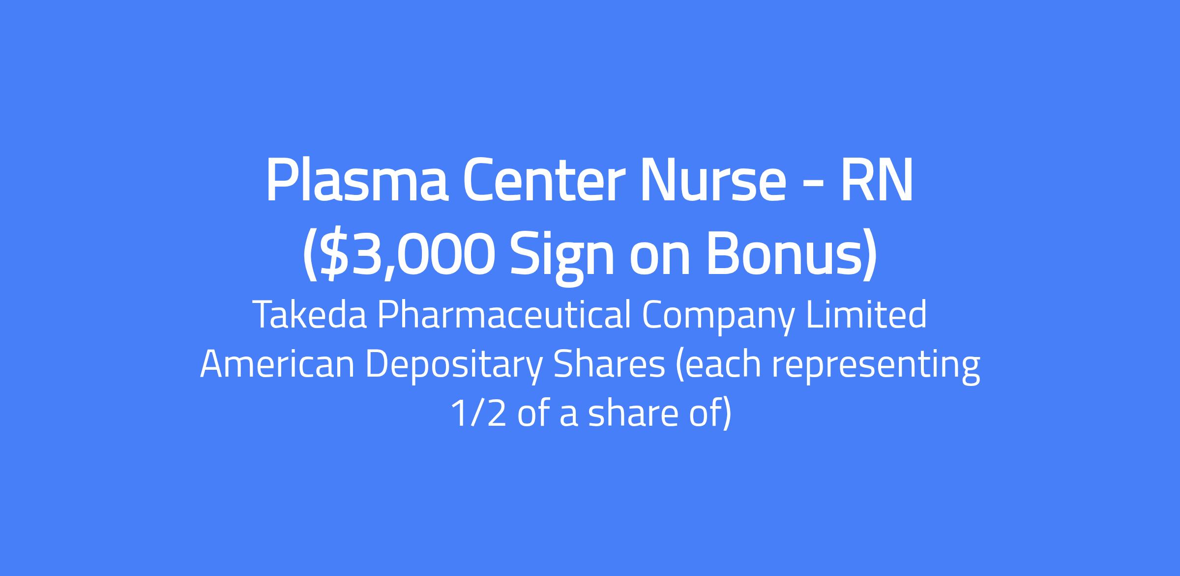 By clicking the âApplyâ button, I understand that my employment application process with Takeda will commence and that the information I provide in my application will be processed in line with Takedaâs Privacy Notice and Terms of Use. I further attest that all information I submit in my employment application is true to the best of my knowledge. Job Description Please take this virtual tour to get a sneak peek of one of our Plasma Donation Centers. About BioLife Plasma Services⯠Every day, the donors you meet will motivate you. The high-quality plasma you collect will become life-changing medicines. Here, a commitment to customer service and quality is expected. You will report to the Plasma Center Manager and will perform as a Medical Support Specialist (Plasma Center Nurse) to support plasma center operations.⯠BioLife Plasma Services is a subsidiary of Takeda Pharmaceutical Company Ltd.⯠About the role:⯠Every day, the donors you meet will motivate you. The high-quality plasma you collect will become life-changing medicines. Here, a commitment to customer service and quality is expected. You will determine donor eligibility to donate plasma, management of donor adverse events, review of laboratory test results, and donor notification of unsuitable test results. The Medical Support Specialist (Plasma Center Nurse) works under the guidance of the Center Manager (or Assistant Manager as applicable) for operational guidance and under the management of the Center Physician for medical issues. The Medical Support Specialist will be familiar with regulations of the plasma collection industry or a manufacturing environment. The Medical Support Specialist follows guidance provided by BioLife Medical Affairs and provides center level support of environmental, health and safety (EHS).⯠How you will contribute⯠You will determine donor eligibility; to include, proper management of informed consent, AIDS education and confidential self-exclusion, medical history interview and acceptance requirements, physical examination, blood testing, and reviewing Serological Protein Electrophoresis (SPE).⯠You will evaluate donor reaction(s), which occurs at the facility as outlined in the SOPs. Follow applicable SOPs for medical emergencies including the development of Center Physician's standing orders and donor transport to emergency care facilities.⯠You will refer to the Center Physician or Medical Affairs (as applicable) when in need of providing unacceptable findings to donors, or guidance concerning medical or technical issues, including donor safety and eligibility.⯠You will support the Hepatitis B and Seasonal Flu vaccination programs for employees as applicable.⯠You will manage employee incidents and determine whether further evaluation is required by occupational health/ER. Refer to EHS guidance regarding employee incidents.⯠You can be a Pandemic Coordinator when authorized by EHS and support investigations associated with pandemic threats within the local community as indicated by EHS or Medical Affairs.⯠What you bring to Takeda:⯠High school diploma or equivalent to including graduate equivalent of a recognized educational nursing program with state requirements⯠Currently licensed or certified in the state where responsibilities will be assigned: Registered Nurse (RN), Nurse Practitioner (NP) or Physician Assistant (PA) Current Cardiopulmonary Resuscitation (CPR) and AED certification⯠Fulfill state requirements (in state of licensure) for basic IV therapy⯠Satisfactorily complete the FDA approved training requirements for BioLife Medical Support Specialist⯠Two years in a clinical or hospital setting⯠What Takeda can offer you:⯠Every day at Takeda, we feel good knowing that what we do helps improve the lives of patients with rare diseases.â¯â¯ At BioLife, while you focus on our donors, we will support you. We offer a purpose you can believe in, a team you can count on, opportunities for career growth, and a comprehensive benefits program to include medical/dental, paid time off and retirement benefits, all in a fast-paced, friendly environment.⯠More about us:⯠At Takeda, we are transforming patient care through the development of novel specialty pharmaceuticals and best in class patient support programs. Takeda is a patient-focused company that will inspire and empower you to grow through life-changing work.⯠Certified as a Global Top Employer, Takeda offers stimulating careers, encourages innovation, and strives for excellence in everything we do. We foster an inclusive, collaborative workplace, in which our teams are united by an unwavering commitment to bring Better Health and a Brighter Future to people around the world.⯠BioLife Compensation and Benefits Summary We understand compensation is an important factor as you consider the next step in your career. We are committed to equitable pay for all employees, and we strive to be more transparent with our pay practices. For Location: USA - MA - West Springfield U.S. Hourly Wage Range: $36.96 - $50.82 The estimated hourly wage range reflects an anticipated range for this position. The actual hourly wage offered may depend on a variety of factors, including the qualifications of the individual applicant for the position, years of relevant experience, specific and unique skills, level of education attained, certifications or other professional licenses held, and the location in which the applicant lives and/or from which they will be performing the job.⯠The actual hourly wage offered will be in accordance with state or local minimum wage requirements for the job location. U.S. based employees may be eligible for short-term incentives. U.S. based employees may be eligible to participate in medical, dental, vision insurance, a 401(k) plan and company match, short-term and long-term disability coverage, basic life insurance, a tuition reimbursement program, paid volunteer time off, company holidays, and well-
