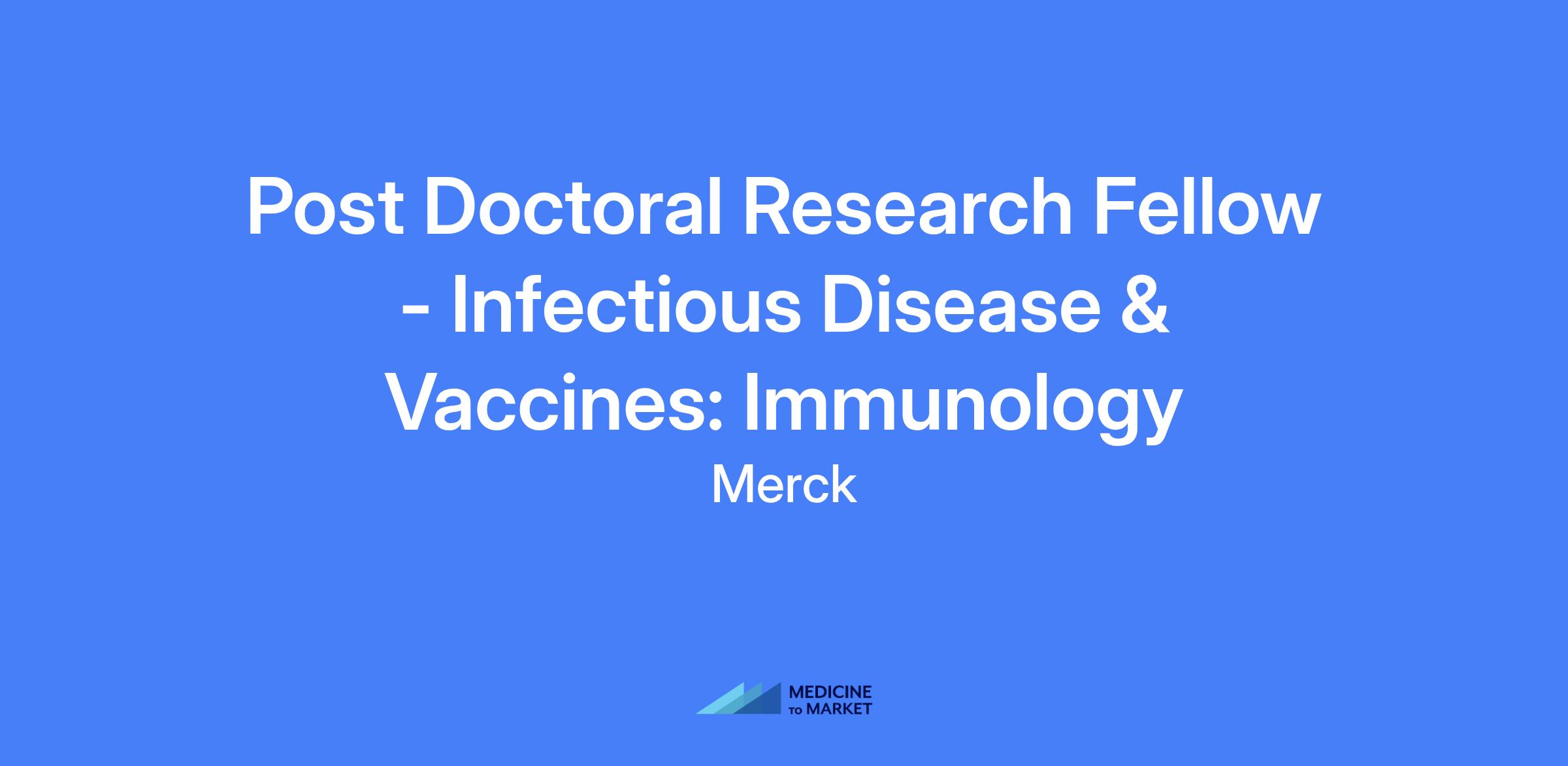 Postdoctoral Research Fellow in Infectious Disease & Vaccines: Immunology at West Point, PA. Focus on immunology or vaccinology and adaptive immunological memory to investigate mechanisms regulating vaccine durability, with emphasis on long-lived plasma cells and memory B cells. Independent project launches, collaboration with mentors, and development of research plans to generate durable vaccine responses.