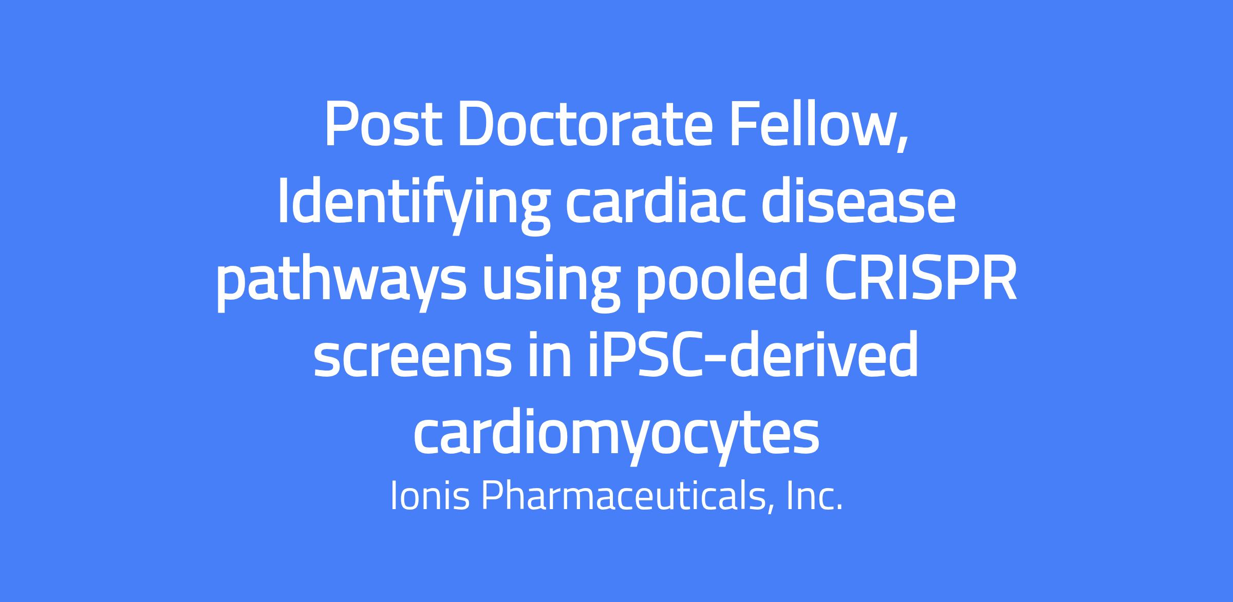 Post Doctorate Fellow, Identifying cardiac disease pathways using pooled CRISPR screens in iPSC-derived cardiomyocytes