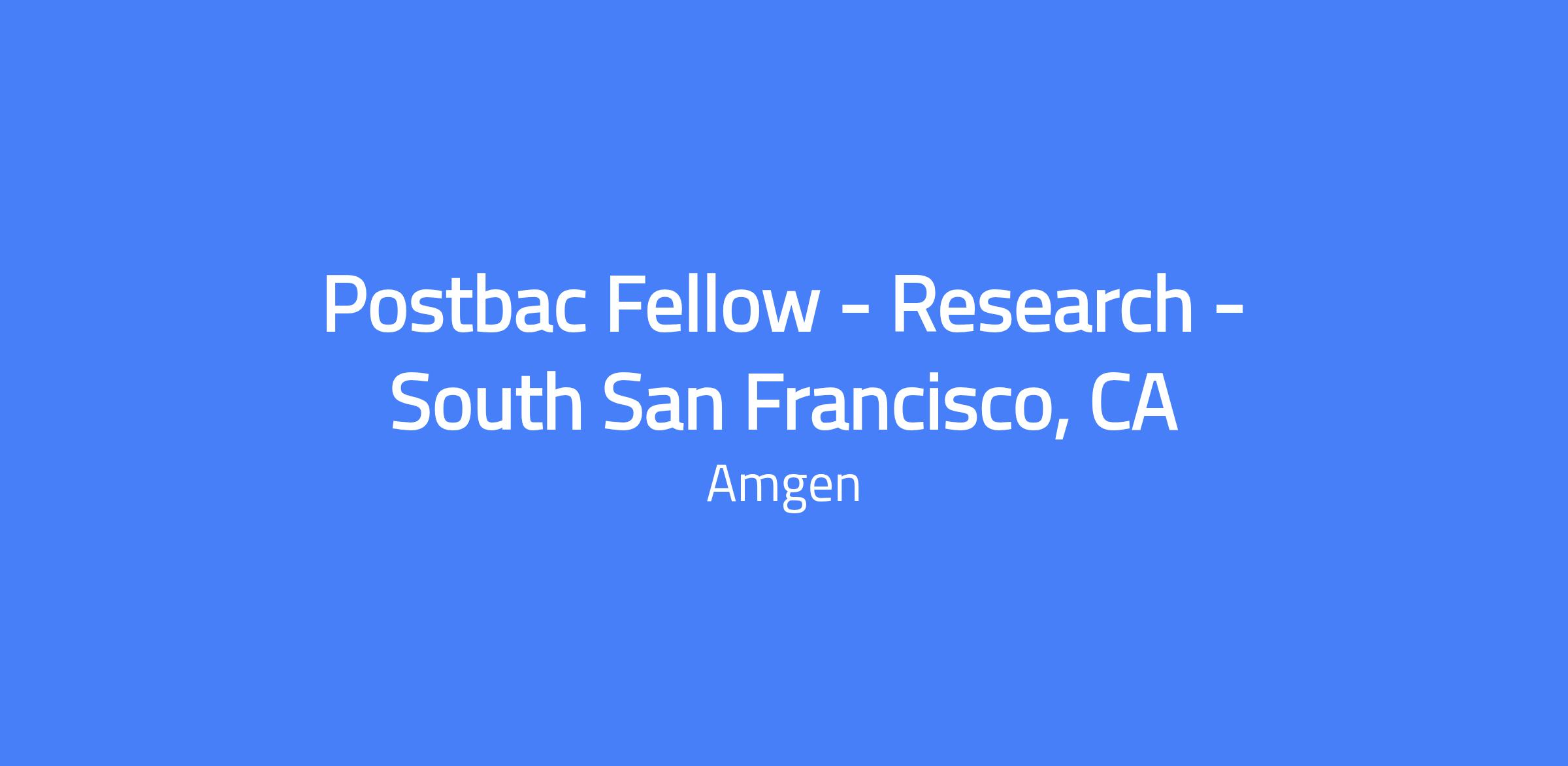 Postbaccalaureate Fellow (5 openings) β South San Francisco, CA