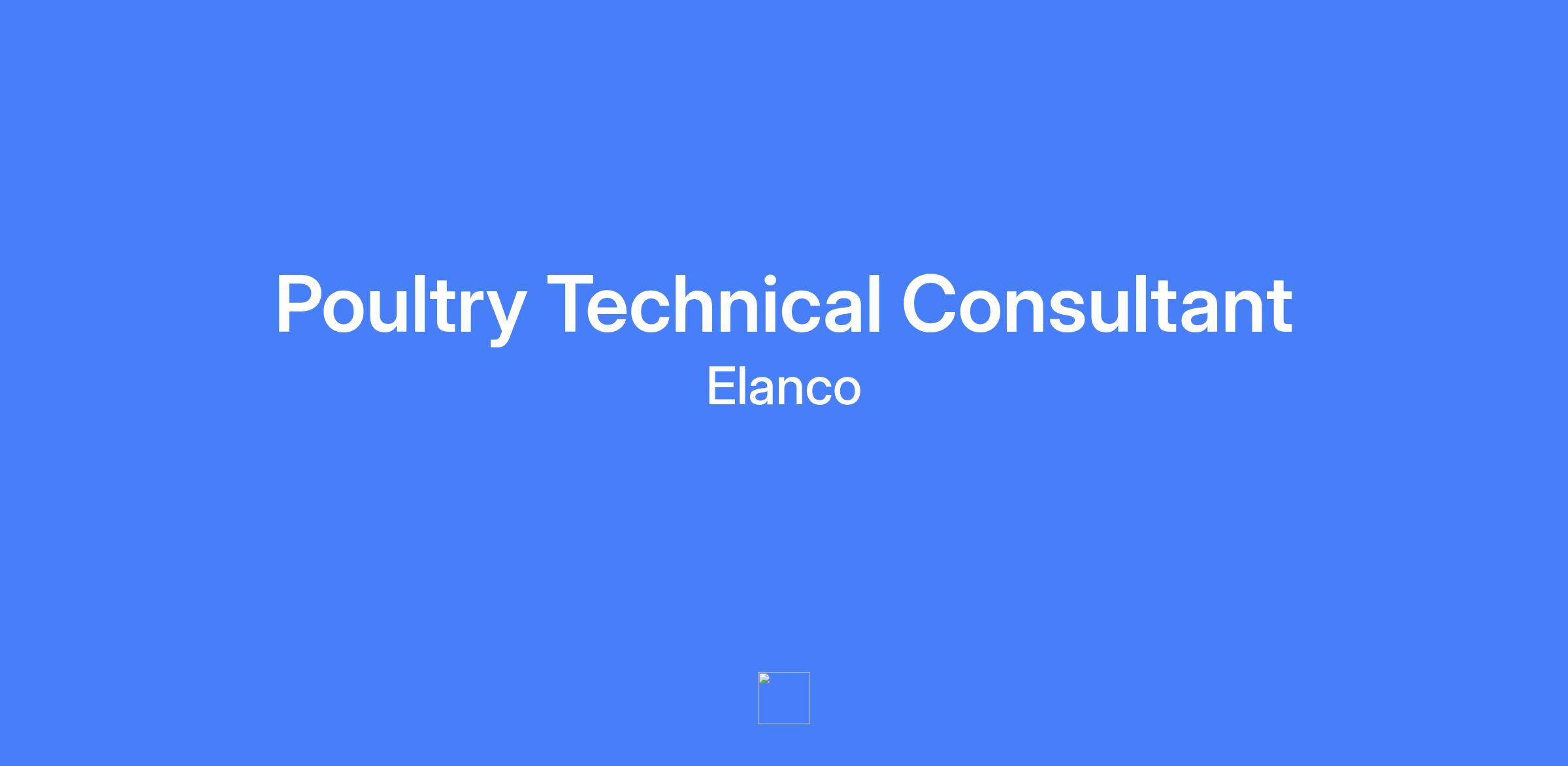 Poultry Technical Consultant. The Poultry Technical Consultant will work with customers to position Elanco as the partner of choice by delivering exceptional technical expertise, market leading product solutions, scientifically sound research studies, and value beyond product including consulting, analytics, diagnostics, and market access support.