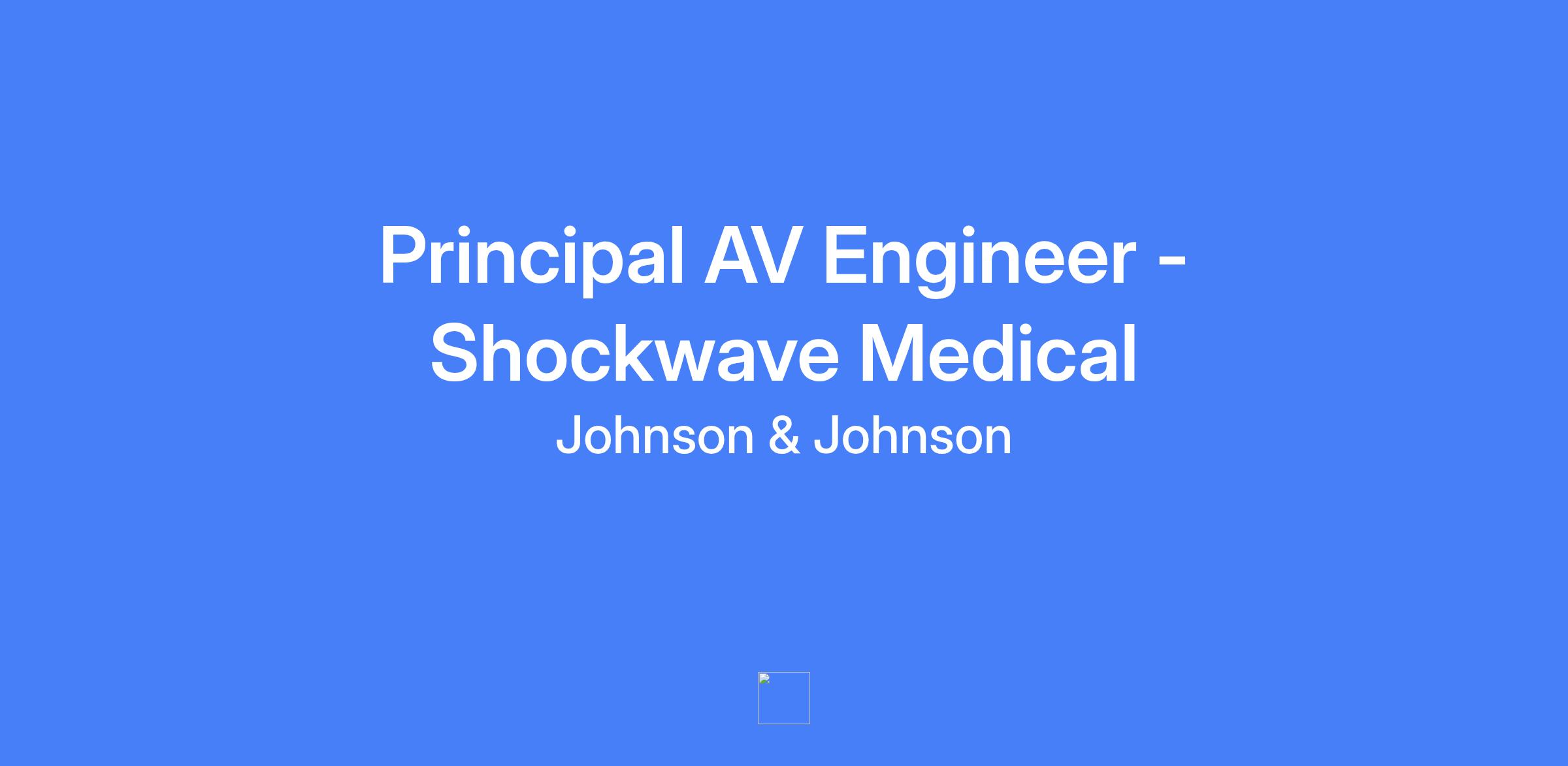 Principal AV Engineer โ Shockwave Medical responsible for maintaining and upgrading conference room AV systems, ensuring modernity and functionality, and collaborating with external vendors and the Johnson & Johnson AV team in Santa Clara, CA.