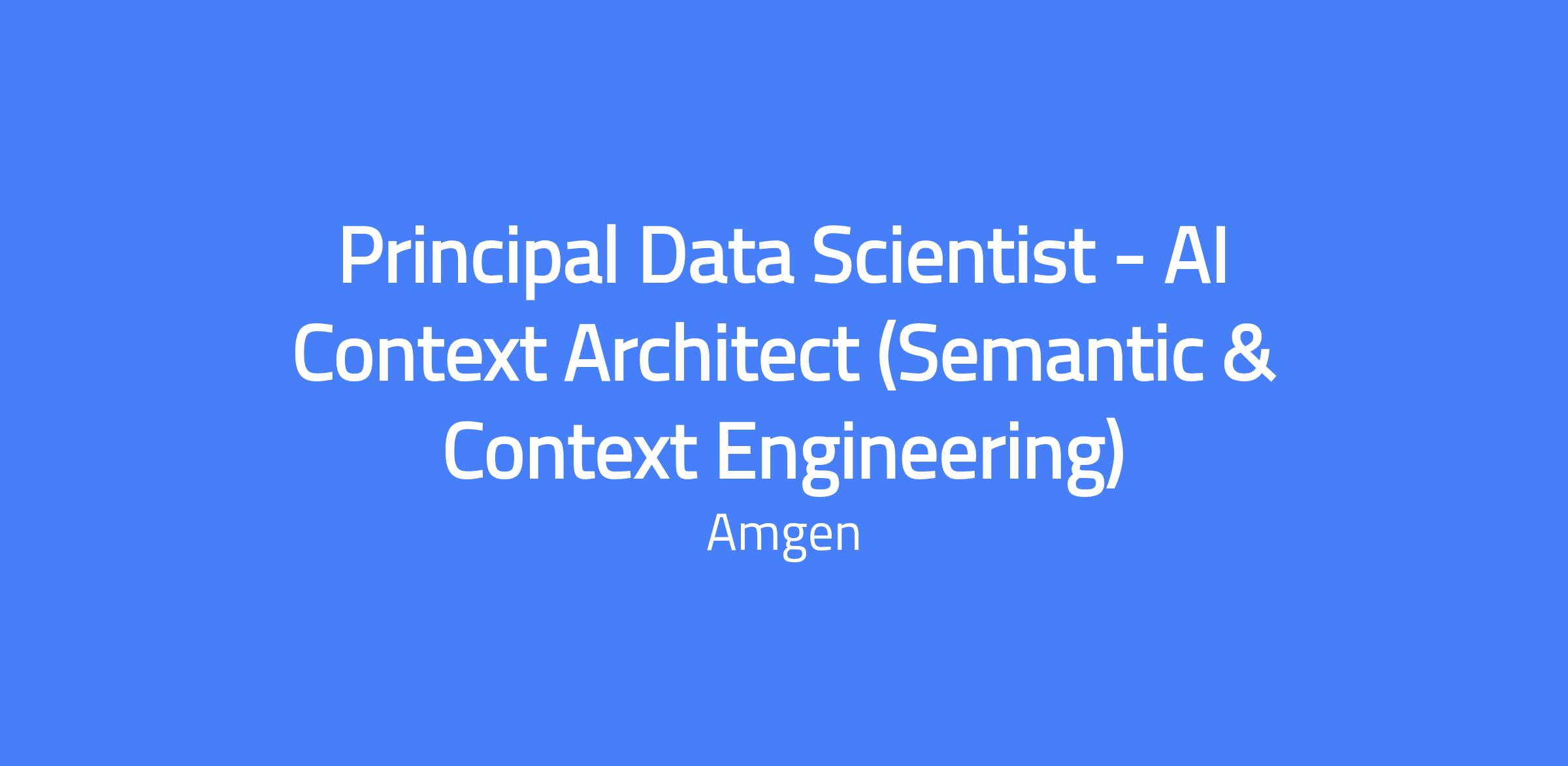 Principal Data Scientist – AI Context Architect (Semantic & Context Engineering) at Amgen. Focuses on semantic modeling, context engineering, and AI-first data science to enable high-performing ML, RL-informed approaches, and generative AI systems through well-architected context.