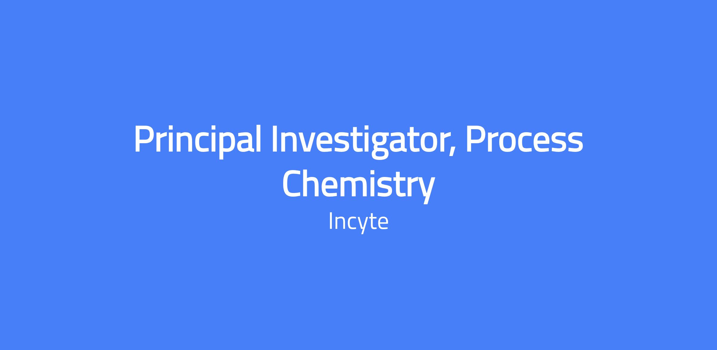 Principal Investigator, Process Chemistry