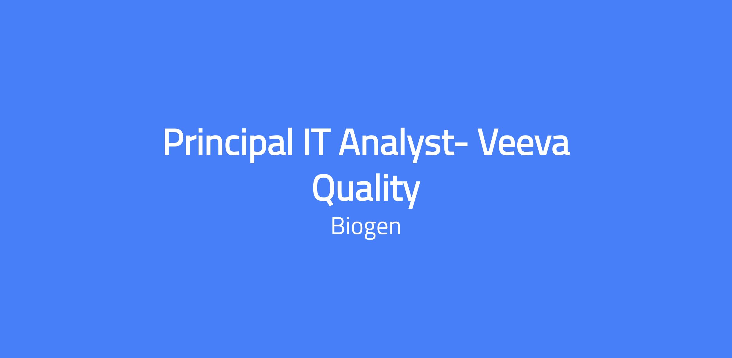As a Principal IT Analyst - Veeva Quality, you will design, build, implement, and maintain the Veeva Vault QualityDocs system. You will act as the IT System Owner, collaborating with business analysts, technical architects, system configurators, and project managers to deliver upgrades, enhancements, and new modules aligned with strategic roadmaps. Your work will support regulatory compliance and user needs, combining technical leadership with hands-on implementation and project management.
