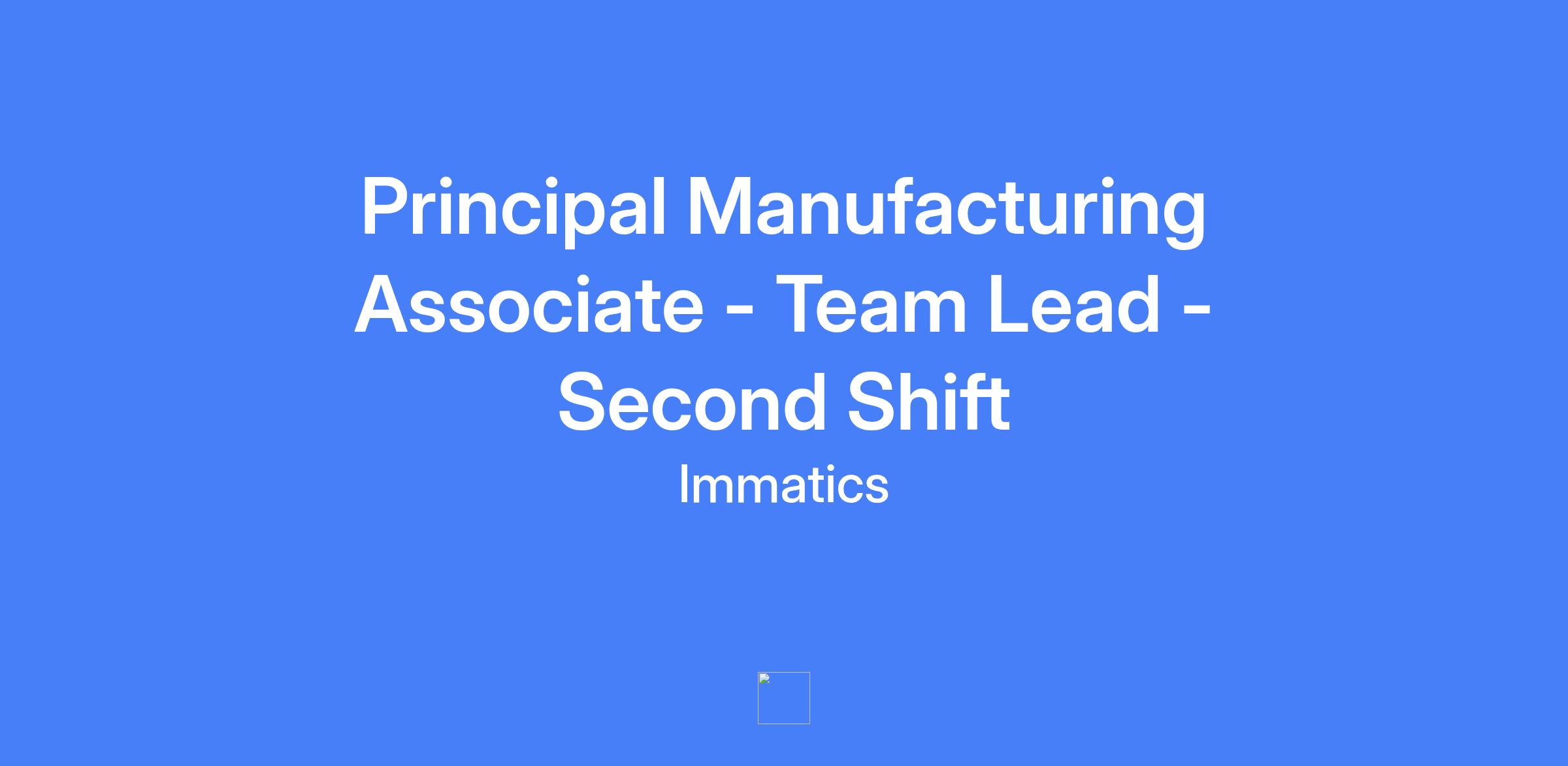 Principal Manufacturing Associate – Team Lead (Second Shift). Oversees daily GMP operations for the CMC-GMP team, serving as the on-the-floor subject matter expert for IMA20x manufacturing processes and activities. Ensures adherence to GMP standards, coordinates cross-functionally, and drives operational excellence in cell therapy production.
