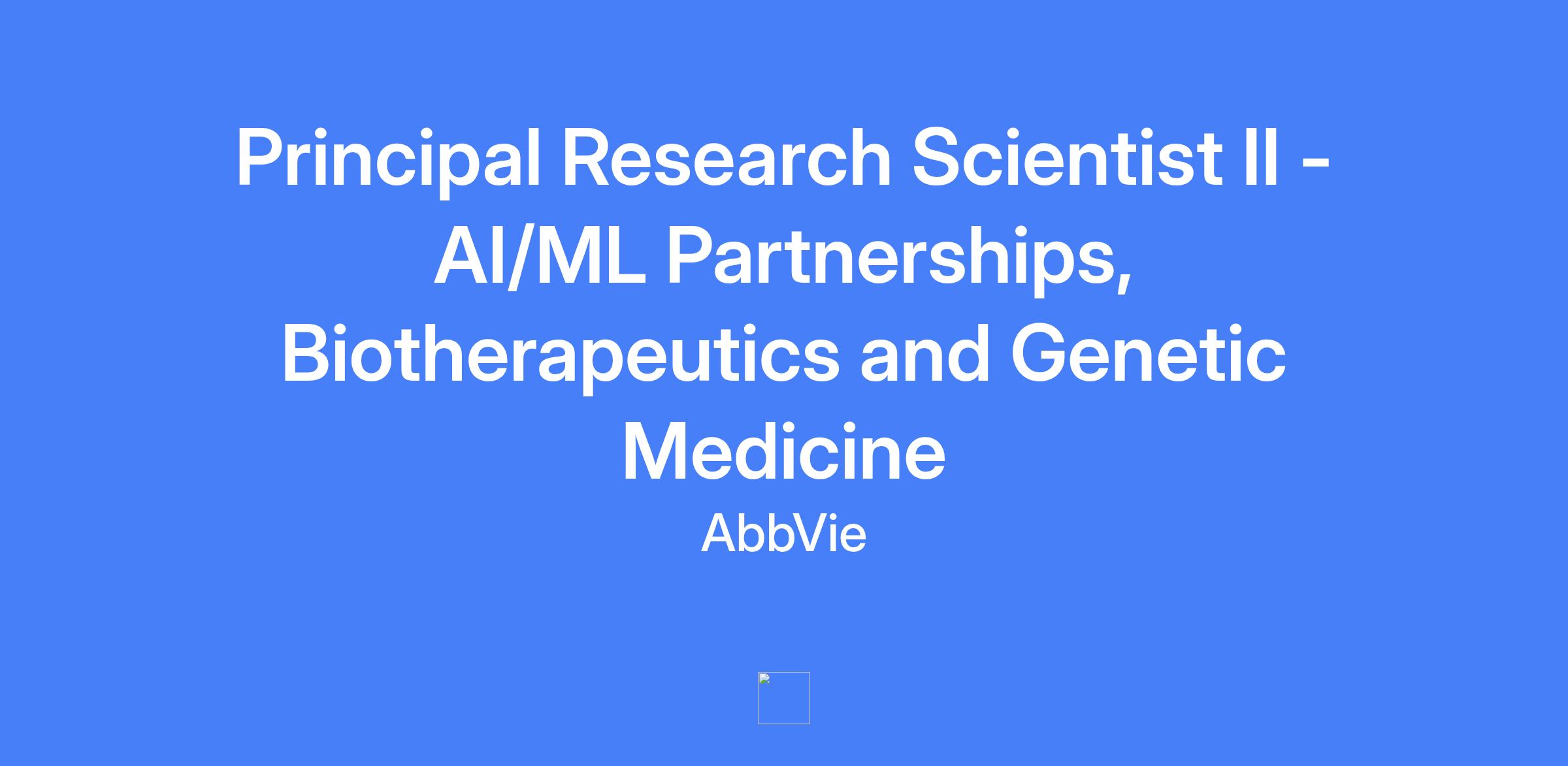 The role of Principal Research Scientist II - AI/ML Partnerships (Biotherapeutics and Genetic Medicine) is a senior leadership position focused on driving AbbVie’s AI/ML external strategy within Biotherapeutics & Genetic Medicine (BGM). The role requires an energetic strategic thinker with deep technical AI/ML expertise in biopharma, capable of representing BGM’s priorities in external engagements and aligning AI/ML initiatives with overarching business objectives. This position reports to the Head of AI/ML in BGM and serves as a trusted advisor to senior leadership, accelerating our application of AI/ML and delivering tangible value to patients. Location options include Worcester, MA; Cambridge, MA; or San Francisco, CA, with flexible on-site or hybrid arrangements.