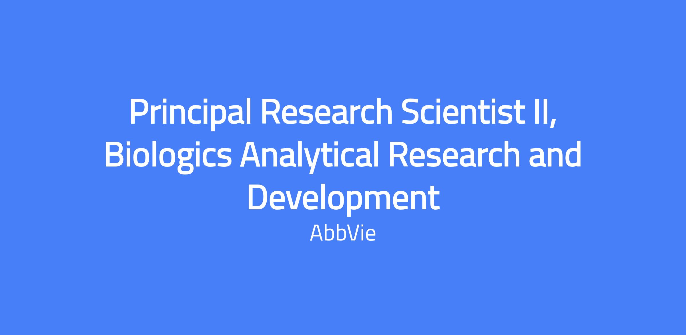 Principal Research Scientist II, Biologics Analytical Research and Development. Responsible for developing and executing discipline strategy aligned with functional goals, leading analytical capabilities for biologics using mass spectrometry and other advanced techniques, and collaborating across global teams to support product development. Mentors colleagues, drives programs through critical milestones, and contributes to innovative science and technology within the biologics characterization group.
