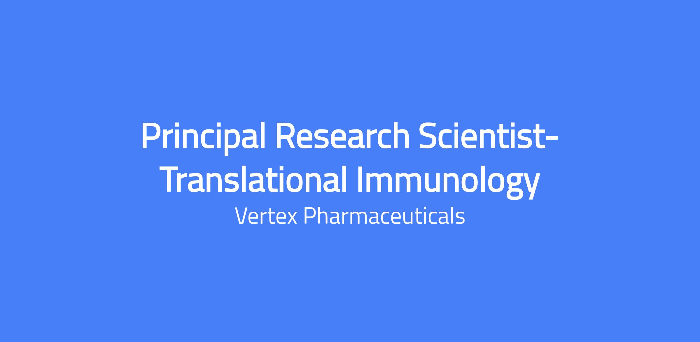 Vertex is seeking a Principal Scientist, Translational Immunology to join our Seattle-based Research & Development organization. This role will provide scientific leadership at the interface of discovery and early development, translating immune disease mechanisms into robust, clinically actionable programs. The successful candidate will partner closely with Immune Cell Profiling, Discovery Immunology, Computational Sciences, Biomarkers, and Clinical colleagues to design and execute translational strategies that advance programs from late discovery through IND-enabling stages. This position requires deep immunology expertise, strong cross-functional leadership, and a proven ability to drive programs forward through data-driven decision-making.