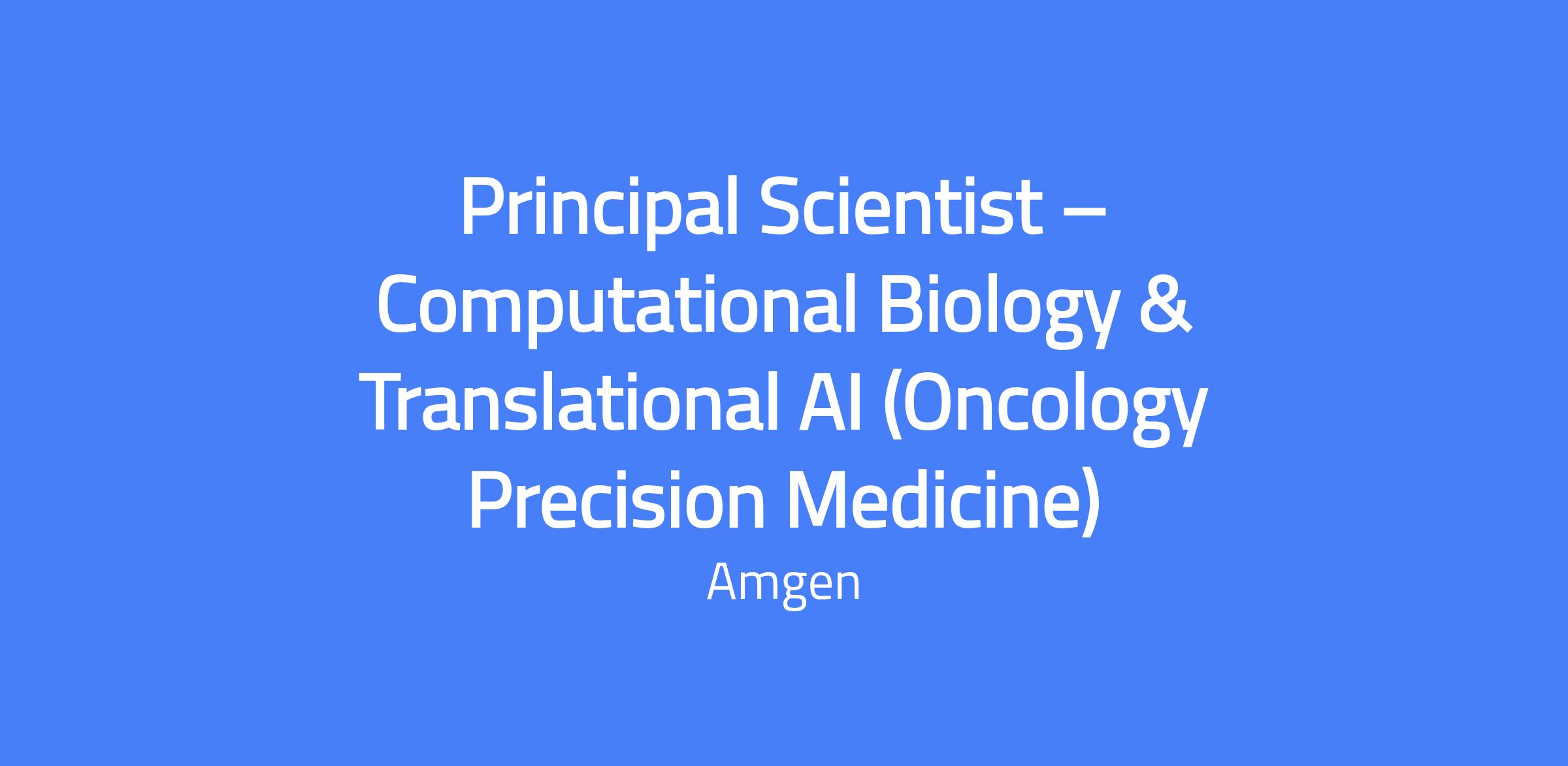 The Principal Scientist – Computational Biology & Translational AI (Oncology Precision Medicine) will lead pan-asset forward and reverse translational analyses, designing and deploying AI-enabled analytical and agentic systems that connect preclinical, translational, and clinical data to drive mechanistic understanding, biomarker hypotheses, and development strategy across oncology programs. Based in the Computational Biology group within the Center for Technology and Innovation (CfTI) in Amgen's Precision Medicine organization, the role focuses on modern AI (Generative AI and Agentic AI) and multi-modal data integration to accelerate translational insight. You will partner with biology, assay, pathology, and clinical teams to contextualize translational signals, communicate results to stakeholders, and contribute as a translational science and AI thought leader across assets.
