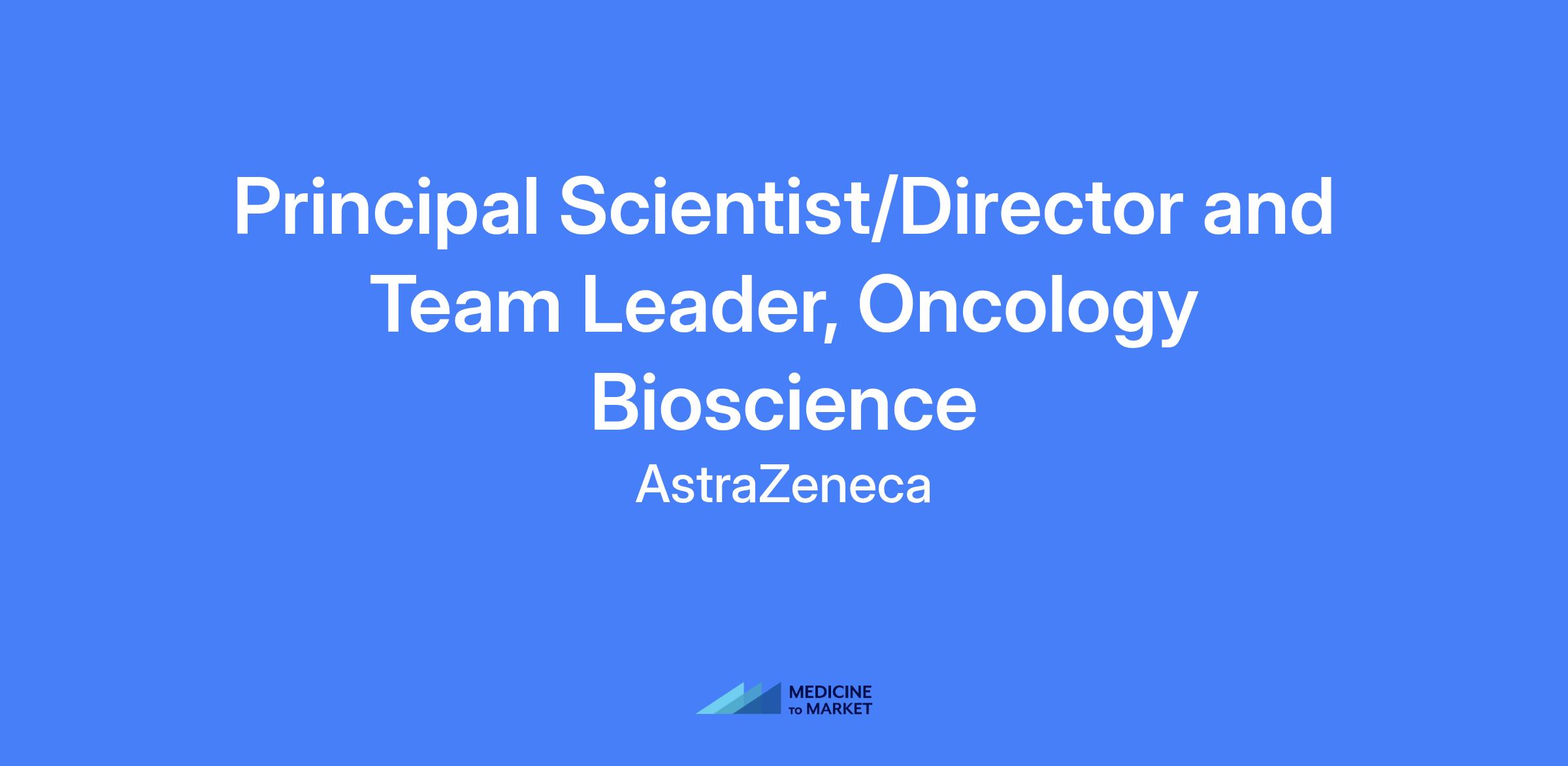 Principal Scientist/Director and Team Leader, Oncology Bioscience — lead small molecule drug discovery for oncology, guiding projects within the Oncology Targeted Discovery department. Provide scientific leadership in cancer biology and drug discovery, collaborating in a dynamic team to advance oncology medicines and support department and site leadership.