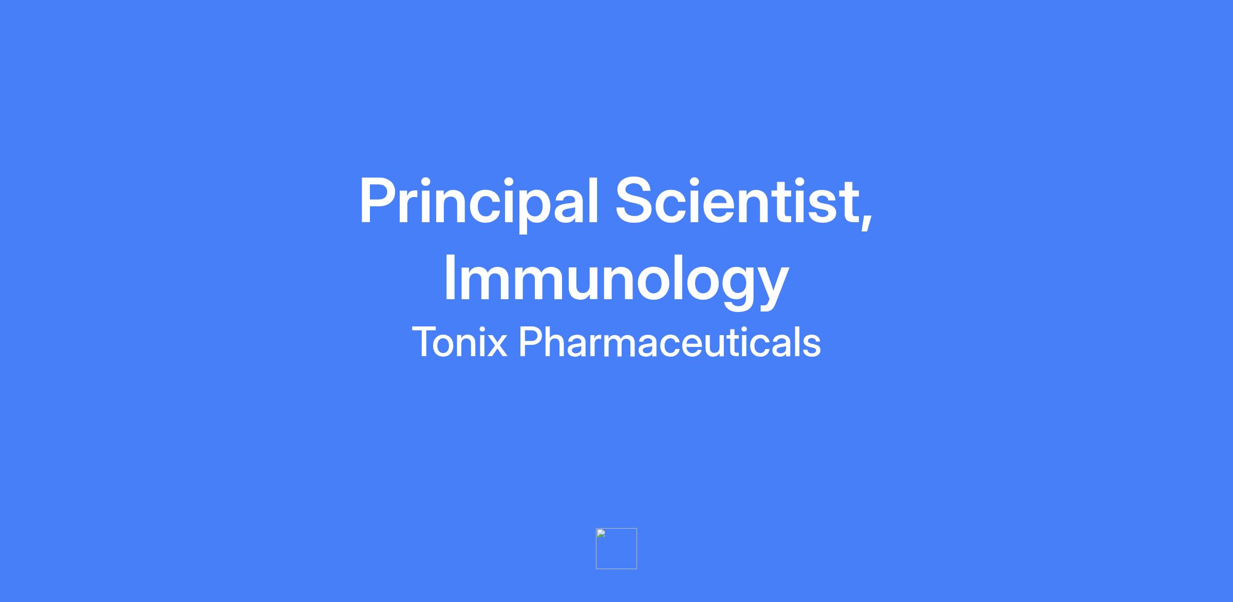 Principal Scientist, Immunology, to contribute to research and development across the immunology portfolio with end-to-end exposure to therapeutic discovery, nonclinical safety and pharmacology evaluation, cGMP manufacturing, and clinical evaluation. Requires a Ph.D. or M.D./Ph.D. in a relevant field, strong publication record, and experience in an interdisciplinary team. Located at the Tonix Research and Development Center in Frederick, Maryland; travel expectations are minimal.