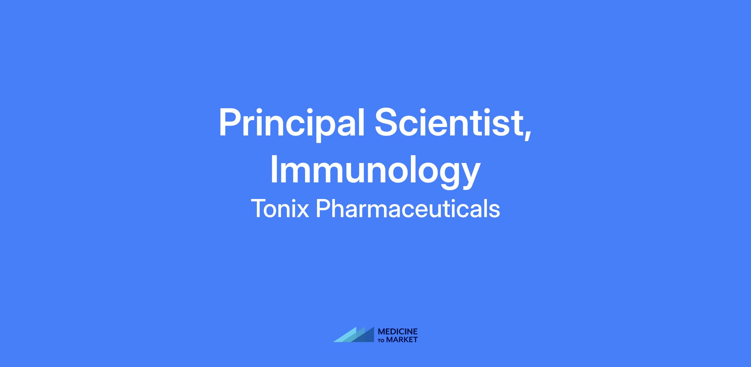 Principal Scientist, Immunology, to contribute to research and development across the immunology portfolio with end-to-end exposure to therapeutic discovery, nonclinical safety and pharmacology evaluation, cGMP manufacturing, and clinical evaluation. Requires a Ph.D. or M.D./Ph.D. in a relevant field, strong publication record, and experience in an interdisciplinary team. Located at the Tonix Research and Development Center in Frederick, Maryland; travel expectations are minimal.