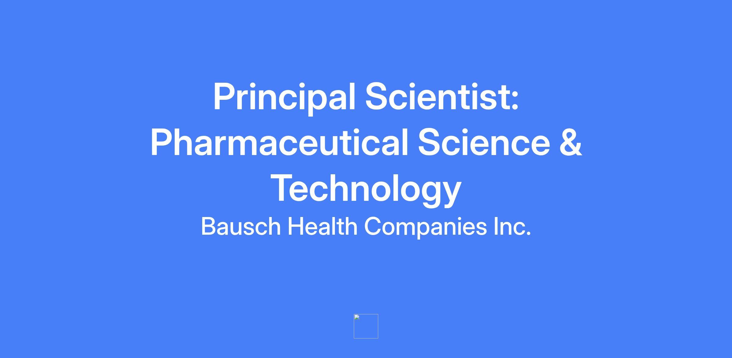 Principal Scientist: Pharmaceutical Science & Technology. Provide proactive support to enable scientific product understanding of chemistry and process for pharmaceutical products within Technical Operations, ensuring robust processes and change control across APIs and drug products.