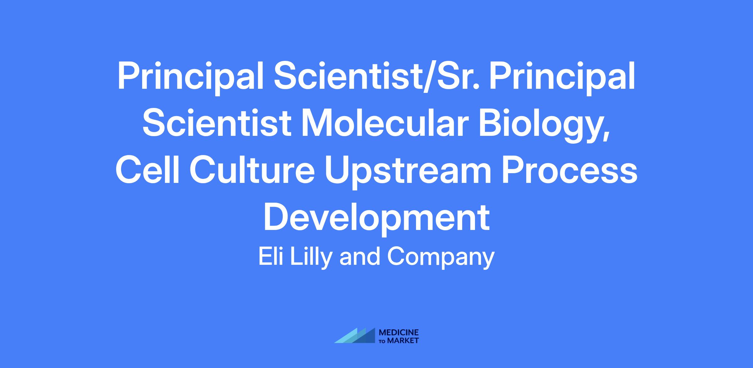 Principal Scientist/Sr. Principal Scientist Molecular Biology, Cell Culture Upstream Process Development. Responsible for upstream process development activities related to the production of bioproduct active pharmaceutical ingredients including cell line development, cell culture process definition and optimization, process robustness studies, process transfers to pilot plant and manufacturing sites and authorship of upstream process development sections of Regulatory submissions. Expected to collaborate with BR&D, Discovery, Technical services for Manufacturing and Manufacturing teams and participate on multidisciplinary CMC project teams.
