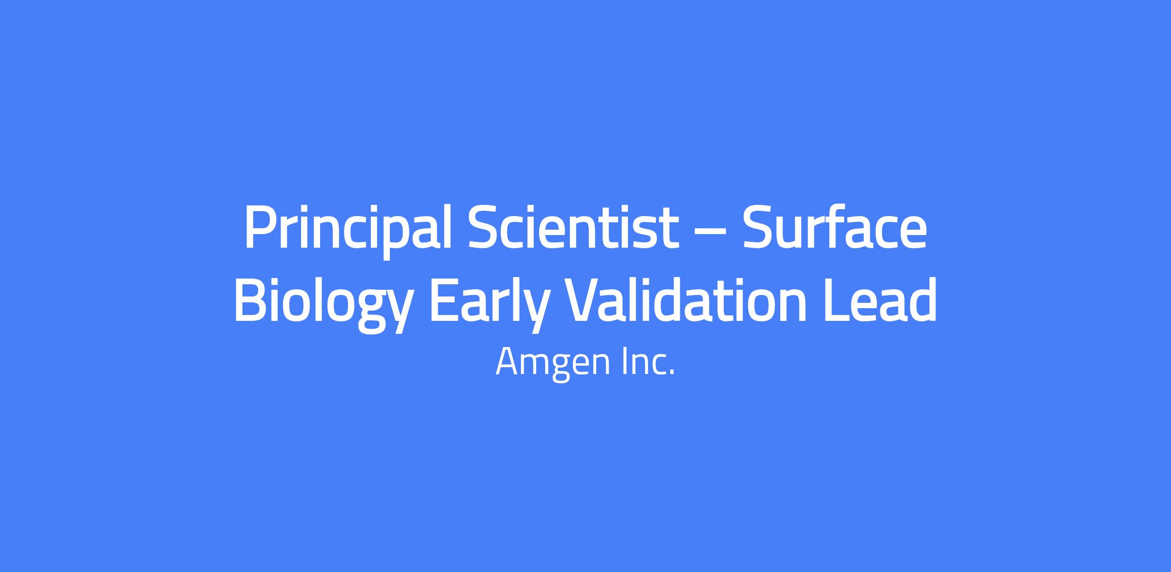 Career Category Clinical Job Description Join Amgenâs Mission of Serving Patients At Amgen, if you feel like youâre part of something bigger, itâs because you are. Our shared missionâto serve patients living with serious illnessesâdrives all that we do. Since 1980, weâve helped pioneer the world of biotech in our fight against the worldâs toughest diseases. With our focus on four therapeutic areas âOncology, Inflammation, General Medicine, and Rare Diseaseâ we reach millions of patients each year. Amgen is advancing a broad and deep pipeline of medicines to treat cancer, heart disease, inflammatory conditions, rare diseases, and obesity and obesity-related conditions. As a member of the Amgen team, youâll help make a lasting impact on the lives of patients as we research, manufacture, and deliver innovative medicines to help people live longer, fuller happier lives. Our award-winning culture is collaborative, innovative, and science based. If you have a passion for challenges and the opportunities that lay within them, youâll thrive as part of the Amgen team. Join us and transform the lives of patients while transforming your career. Principal Scientist â Surface Biology Early Validation Lead What you will do Letâs do this. Letâs change the world. We are building a high-throughput surface biology capability to enable early validation and characterization of membrane protein targets across Therapeutic Areas. This work focuses on generating high-quality experimental data to deepen understanding of target biology and support downstream therapeutic exploration. We are seeking an experienced Principal Scientist to lead a team focused on early-stage experimental strategies and assay development to evaluate membrane protein expression, localization, and internalization. In this role, you will guide the development and application of cell-based and quantitative assays, working closely with cross-functional partners to ensure data are robust, scalable, and aligned with discovery needs. You will operate in a highly collaborative environment, partnering with Therapeutic Area teams and platform functions to deliver biologically relevant insights that support target evaluation. Provide scientific and operational leadership for a team supporting early target validation Lead the design and execution of cell-based and quantitative assays to discover and evaluate membrane protein biology Establish robust, scalable workflows to support multiple discovery programs Interpret experimental data and communicate clear, actionable insights to project teams Partner with cross-functional stakeholders across the Discovery Sciences and Advanced Technologies and AI organization, Therapeutic Discovery, and Therapeutic Areas. Collaborate across teams to integrate data and inform target evaluation and prioritization Identify and implement new technologies to enhance assay robustness and throughput Mentor and develop scientists, fostering a culture of rigor, collaboration, and accountability What we expect of you We are all different, yet we all use our unique contributions to serve patients. The professional we seek is a Principal Scientist with these qualifications. Basic Qualifications: Doctorate degree and 3 years of scientific experience OR Masterâs degree and 7 years of scientific experience OR Bachelorâs degree and 9 years of scientific experience OR Associateâs degree and 12 years of scientific experience OR High school diploma / GED and 14 years of scientific experience In addition to meeting at least one of the above requirements, you must have a minimum of 3 years of experience directly managing people and/or leadership experience leading teams, projects, programs, or directing the allocation of resources. Your managerial experience may run concurrently with the required technical experience referenced above Preferred Qualifications: PhD in Cell Biology, Molecular Biology, or related discipline 5+ years of relevant industry experience, including leadership of scientific projects or teams Strong track record in cell-based assay development and early target validation Experience working with membrane proteins or receptor biology Demonstrated ability to collaborate across functions to support discovery programs Strong communication, organization, and problem-solving skills What you can expect of us As we work to develop treatments that take care of others, we also work to care for your professional and personal growth and well-being. From our competitive benefits to our collaborative culture, weâll support your journey every step of the way. The expected annual salary range for this role in the U.S. (excluding Puerto Rico) is posted. Actual salary will vary based on several factors including but not limited to, relevant skills, experience, and qualifications. In addition to the base salary, Amgen offers a Total Rewards Plan, based on eligibility, comprising of health and welfare plans for staff and eligible dependents, financial plans with opportunities to save towards retirement or other goals, work/life balance, and career development opportunities that may include: A comprehensive employee benefits package, including a Retirement and Savings Plan with generous company contributions, group medical, dental and vision coverage, life and disability insurance, and flexible spending accounts A discretionary annual bonus program, or for field sales representatives, a sales-based incentive plan Stock-based long-term incentives Award-winning time-off plans Flexible work models where possible. Refer to the Work Location Type in the job posting to see if this applies. Apply now and make a lasting impact with the Amgen team. careers.amgen.com In any materials you submit, you may redact or remove age-identifying information such as age, date of birth, or dates of school attendance or graduation. You will not be penalized for redacting or removing this information. Application deadline Amgen does not have 