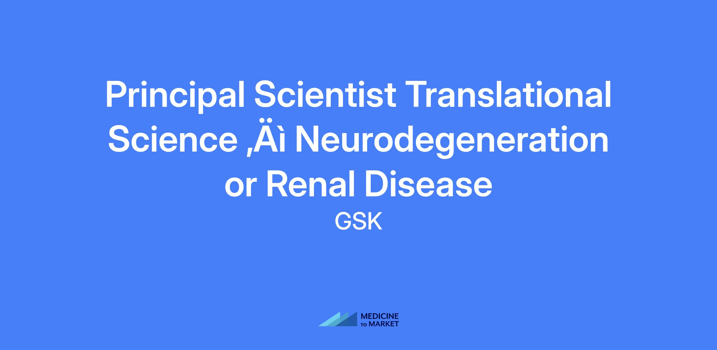 Principal Scientist in the Translational Unit, working in Neurodegeneration or Renal Disease, bridging preclinical and early clinical proof of concept studies by designing and performing translational assays in human-derived cells, tissues, and biofluids.