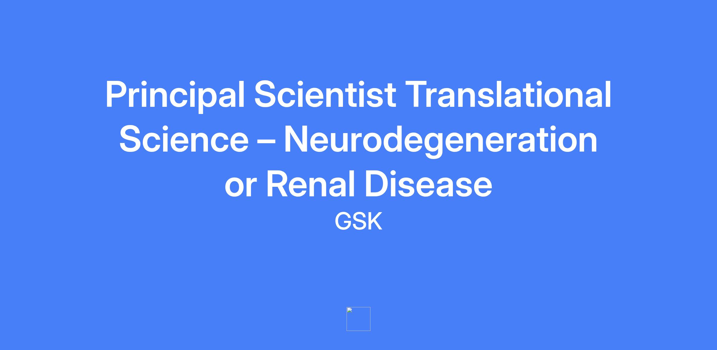 Principal Scientist in the Translational Unit, working in Neurodegeneration or Renal Disease, bridging preclinical and early clinical proof of concept studies by designing and performing translational assays in human-derived cells, tissues, and biofluids.