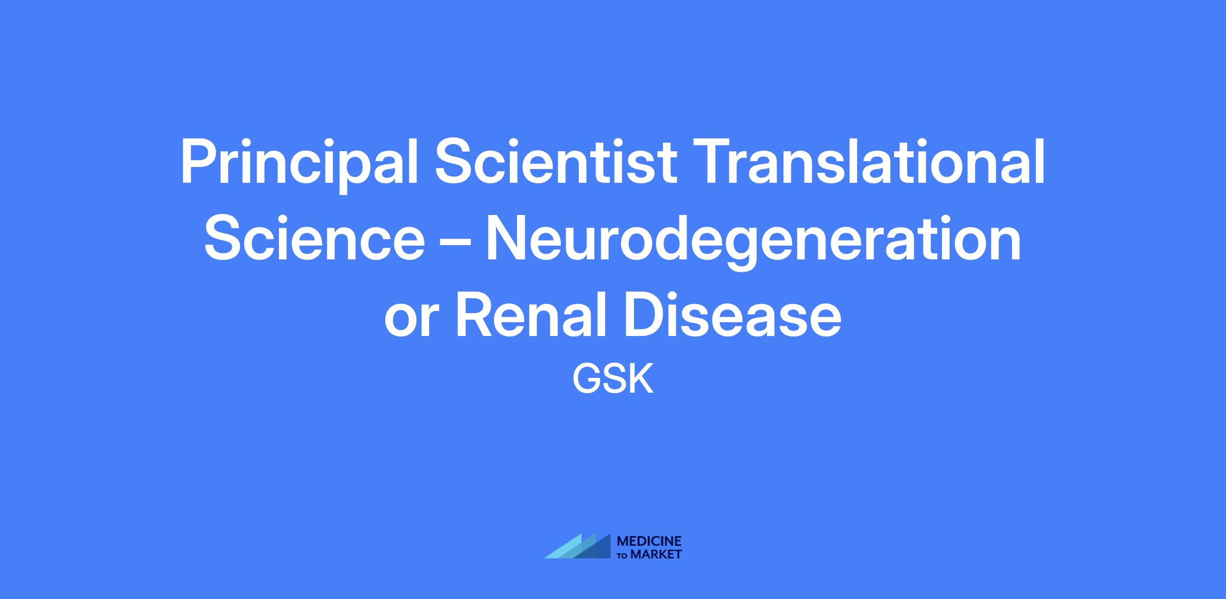Principal Scientist in the Translational Unit, working in Neurodegeneration or Renal Disease, bridging preclinical and early clinical proof of concept studies by designing and performing translational assays in human-derived cells, tissues, and biofluids.