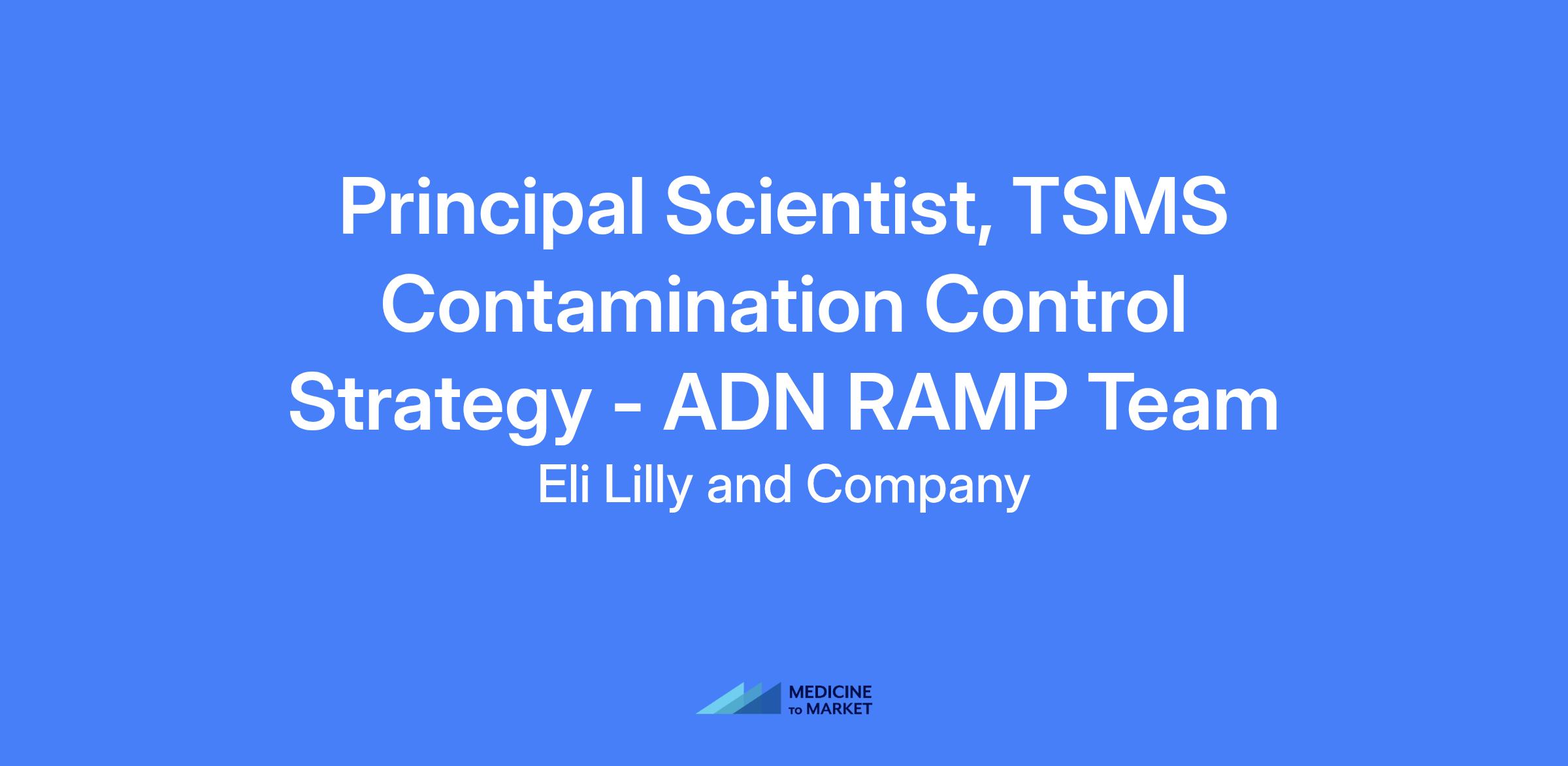 Principal Scientist, TSMS Contamination Control Strategy - ADN RAMP Team. Lead development and implementation of the Contamination Control Strategy for new site facilities, coordinate cross-functional startup activities, and mentor local CCS teams to enable rapid site readiness and startup.