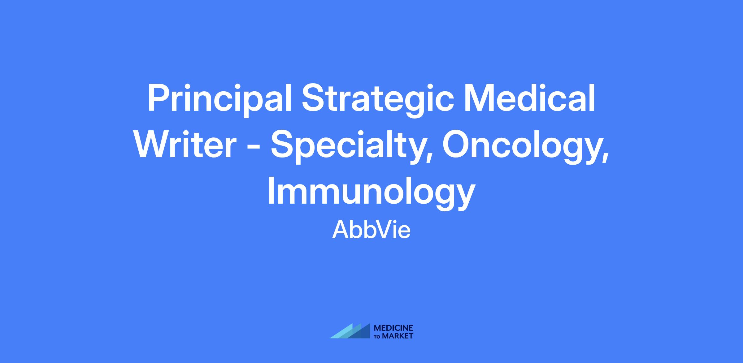 Principal Strategic Medical Writer - Specialty, Oncology, Immunology