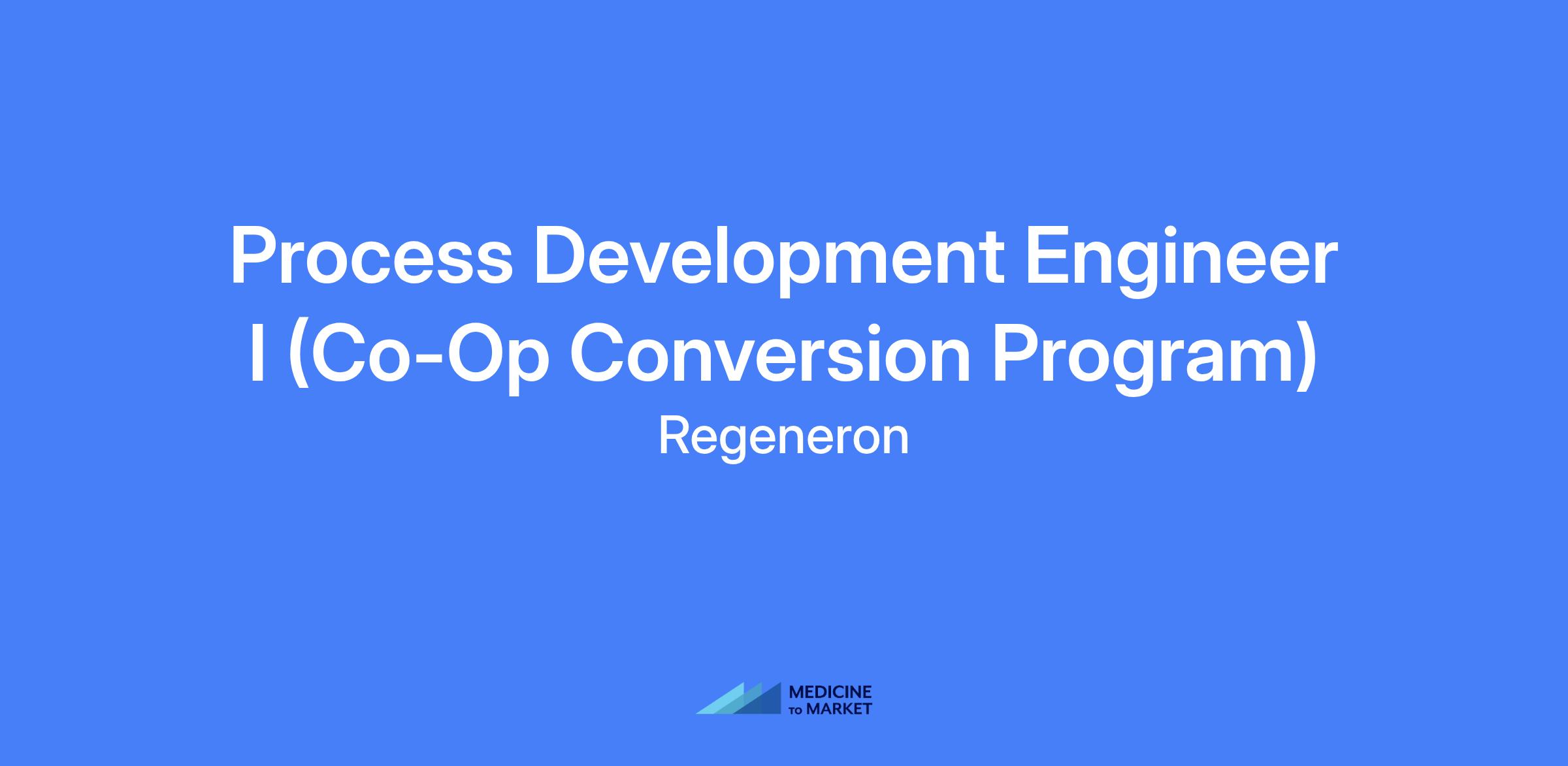 Process Development Engineer I (Co-Op Conversion Program) at Regeneron. Responsible for supporting process development and scale-up of biopharmaceuticals in a fast-paced laboratory setting.