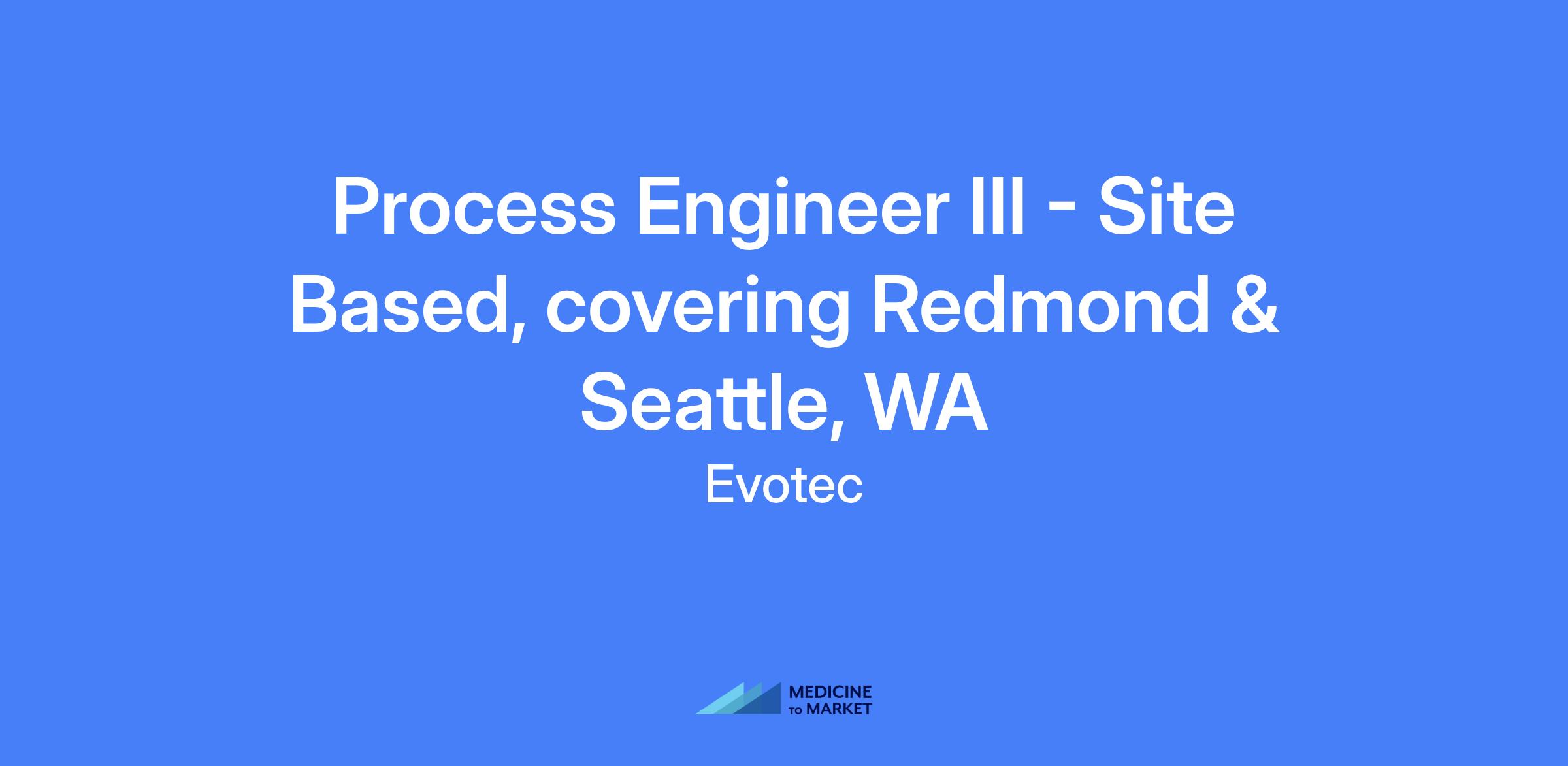 Process Engineer III, Downstream–Site MSAT at Just Evotec Biologic (Redmond, WA and Seattle, WA) supporting site MSAT downstream processing for multiple clinical-scale cGMP manufacturing trains in 24/7 operations.