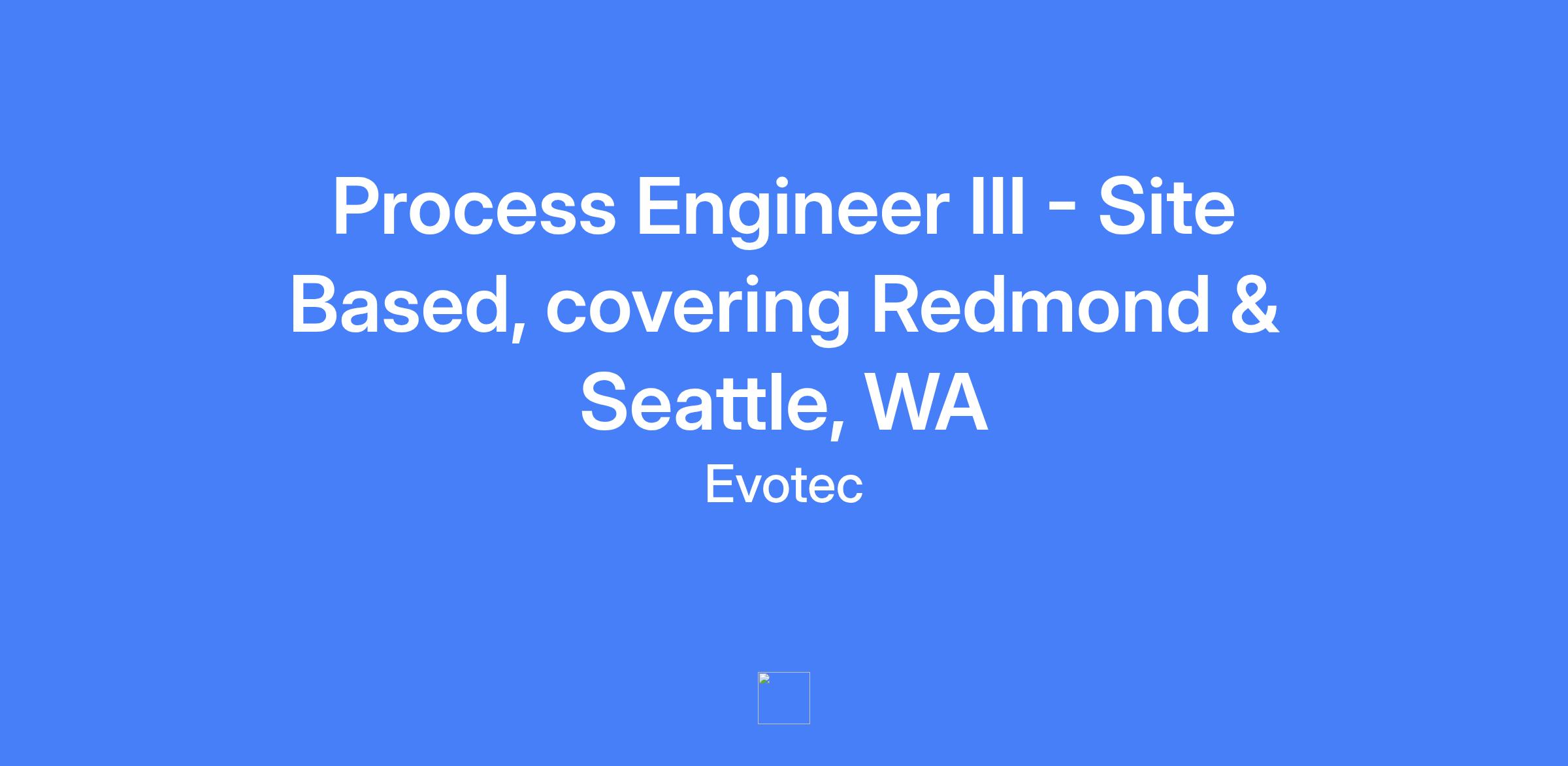 Process Engineer III, Downstream–Site MSAT at Just Evotec Biologic (Redmond, WA and Seattle, WA) supporting site MSAT downstream processing for multiple clinical-scale cGMP manufacturing trains in 24/7 operations.