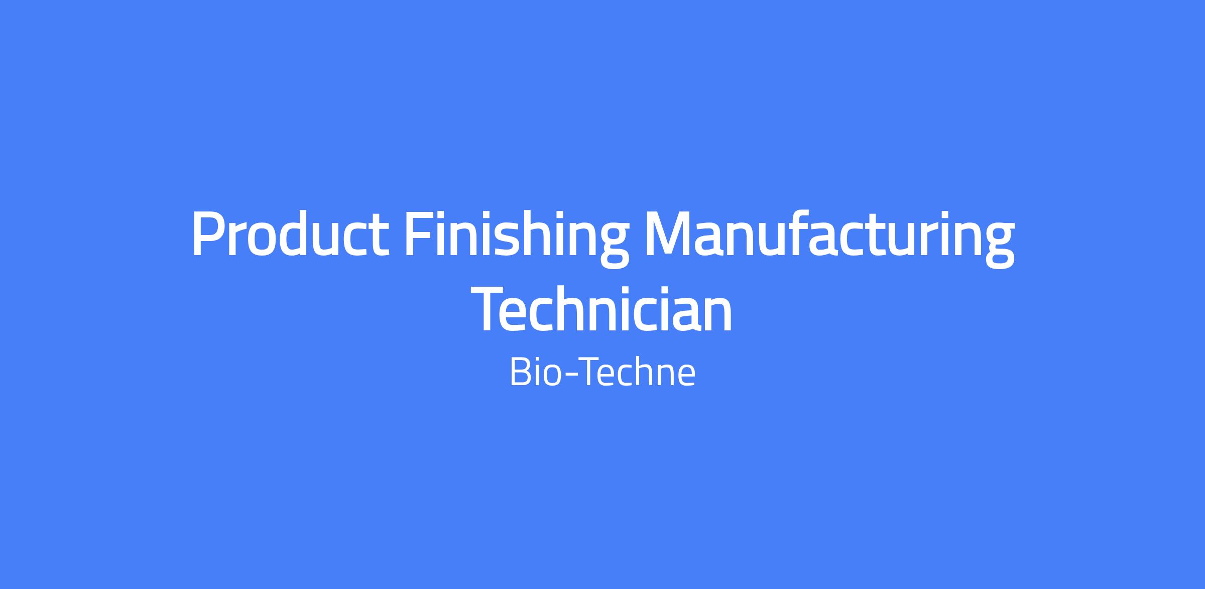 The Product Finishing Manufacturing Technician assists laboratory staff with building and manufacturing science products. This role involves tasks in a laboratory setting such as filling containers with product, feeding production machines, labeling and vialing product, recording data, and operating equipment.