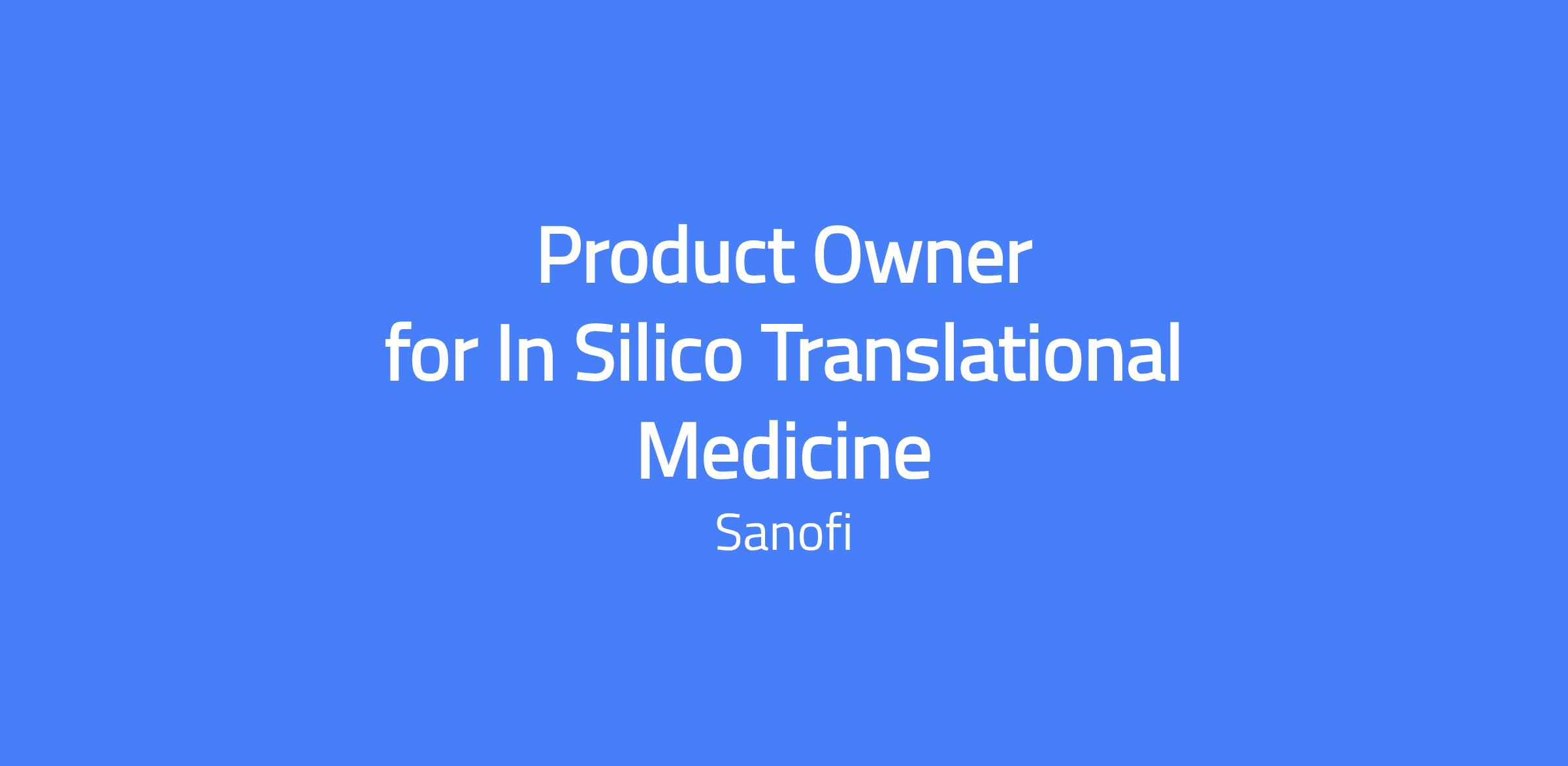 Product Owner for In Silico Translational Medicine
