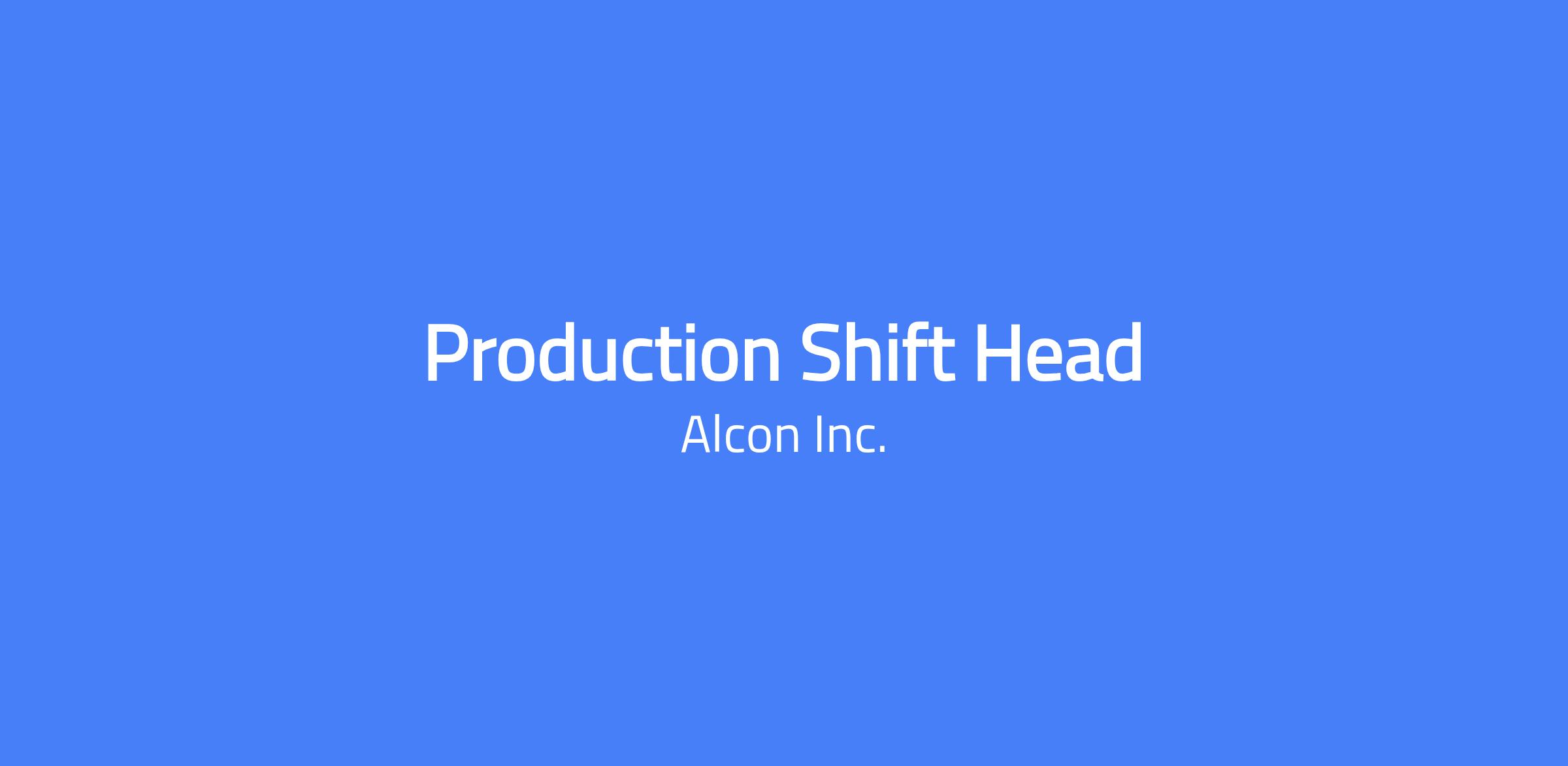 At Alcon, we're passionate about enhancing sight and helping people see brilliantly. With more than 25,000 associates, we innovate fearlessly, champion progress, and act swiftly to impact global eye health. We foster an inclusive culture, recognizing your contributions and offering opportunities to grow your career like never before. Together, we make a difference in the lives of our patients and customers. Are you ready to join us? This role is part of Alcon's Manufacturing function, a team that designs, produces and delivers innovative eyecare products to more than 140 countries through operational excellence and efficiency. The Supervisor, Production Management, is primarily responsible for leading team members to ensure efficient task completion and adherence to processes. You will manage production activities, liaise with departments to develop schedules, and drive continuous improvement. Specifics include: • Oversee team members to ensure efficient task completion and adherence to processes • Manage production activities, including assembly, material forming/shaping, processing, treating, or packaging • Liaise with Manufacturing Engineering, Supply & Logistics, Sales, and other departments to develop production schedules and allocate resources • Plan, prioritize, and manage production line maintenance and downtime to minimize disruptions • Lead or participate in quality investigations and deliver continuous improvement • Assure a safe work environment, develop pipeline talent, and foster a culture of excellence by leading performance management and driving talent development • Ensure positive associate relations, enhance engagement, recognize achievements, and drive a strong safety culture • Make day-to-day decisions affecting team members and impacting daily operations and efficiency • Ensure all associates adhere to Good Manufacturing Practice (GxP) regulations, follow Standard Operating Procedures (SOPs), maintain documentation, and complete required training • Meet individual job requirements and contribute to overall compliance and continuous improvement What Can You Bring to Alcon: Degree in Science or Engineering Minimum 5–7 years of relevant experience, ideally in the medical or pharmaceutical industry Strong command of English (spoken and written) Proven leadership skills, preferably managing team shifts Hands-on experience in leading and managing daily production operations Strong problem-solving and investigative skills Proficiency in SAP is a plus ATTENTION: Current Alcon Employee/Contingent Worker If you are currently an active employee/contingent worker at Alcon, please click the appropriate link below to apply on the Internal Career site. Find Jobs for Employees Find Jobs for Contingent Worker At Alcon, we are committed to helping people see better. We believe patients should have access to quality eye care regardless of their economic circumstances; however, barriers to good eye health exist for patients in both developed and emerging markets. Alcon develops and manufactures innovative devices to serve the full life cycle of eye care needs. Its surgical group is one of the largest makers of equipment used for cataract removal and laser vision correction. Its consumer products include the well-known Opti-Free line of contact lens solutions and related products. Alcon, which was founded in 1945, sells its products in 180 countries worldwide. If you are currently an active employee/contingent worker at Alcon, please click the appropriate link below to apply on the Internal Career site. Find Jobs for Employees Find Jobs for Contingent Worker