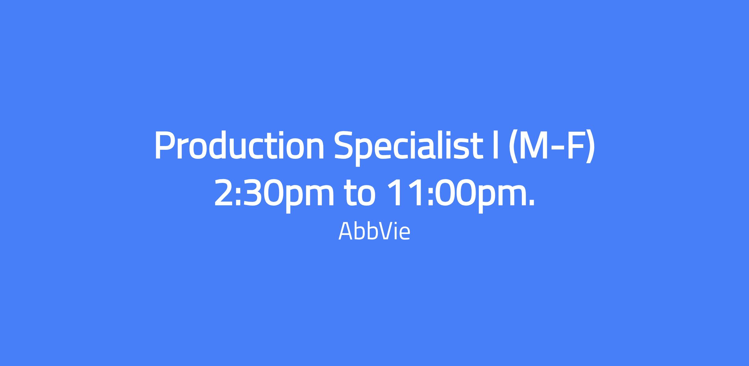 The Production Specialist I will work in a high performing and fast-paced pharmaceutical finishing operation to meet production requirements with a focus on safety and quality. They will support setup, changeover and packaging of pharmaceutical products, contribute to a team environment on the finishing line, and foster a quality-focused culture by motivating others and pursuing excellence within the team.