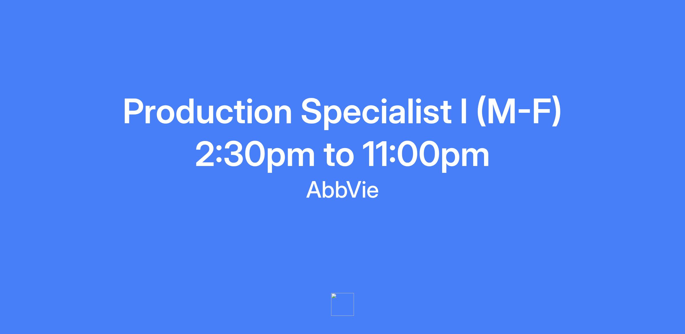 Production Specialist I (M-F) 2:30pm to 11:00pm.