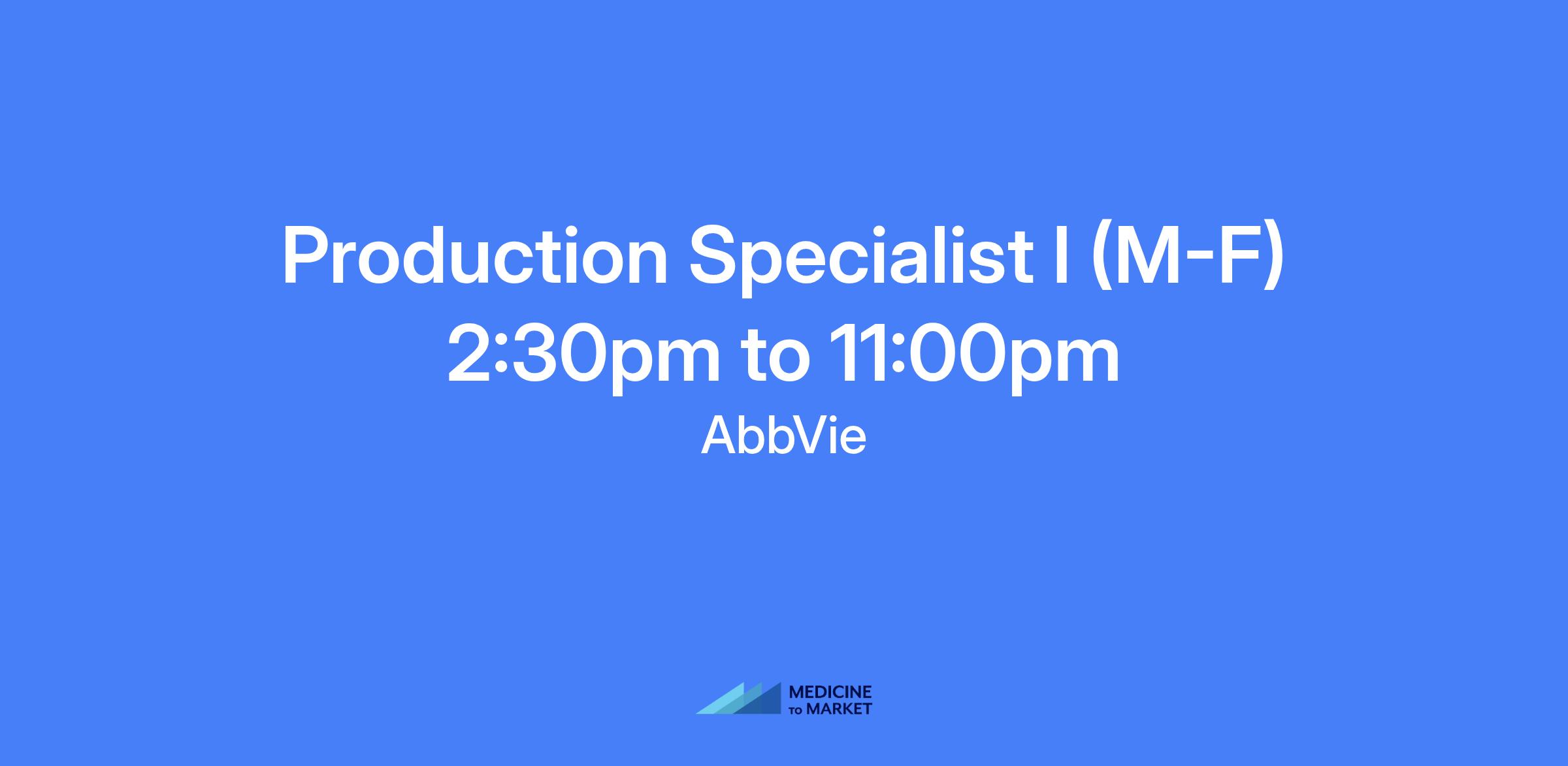 Production Specialist I (M-F) 2:30pm to 11:00pm.