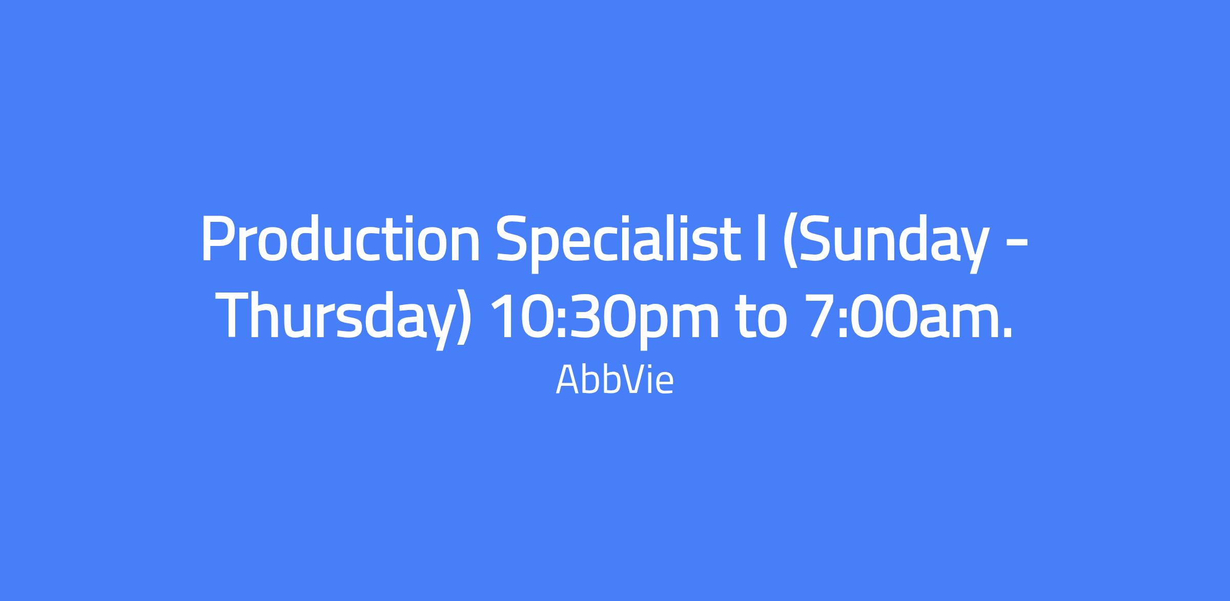 Production Specialist I (Sunday–Thursday, 10:30 pm–7:00 am) in a high performing, fast-paced pharmaceutical finishing operation focused on safety and quality. Responsible for supporting setup, changeover and packaging of pharmaceutical products, and for fostering a team environment on the finishing line while driving for excellence.