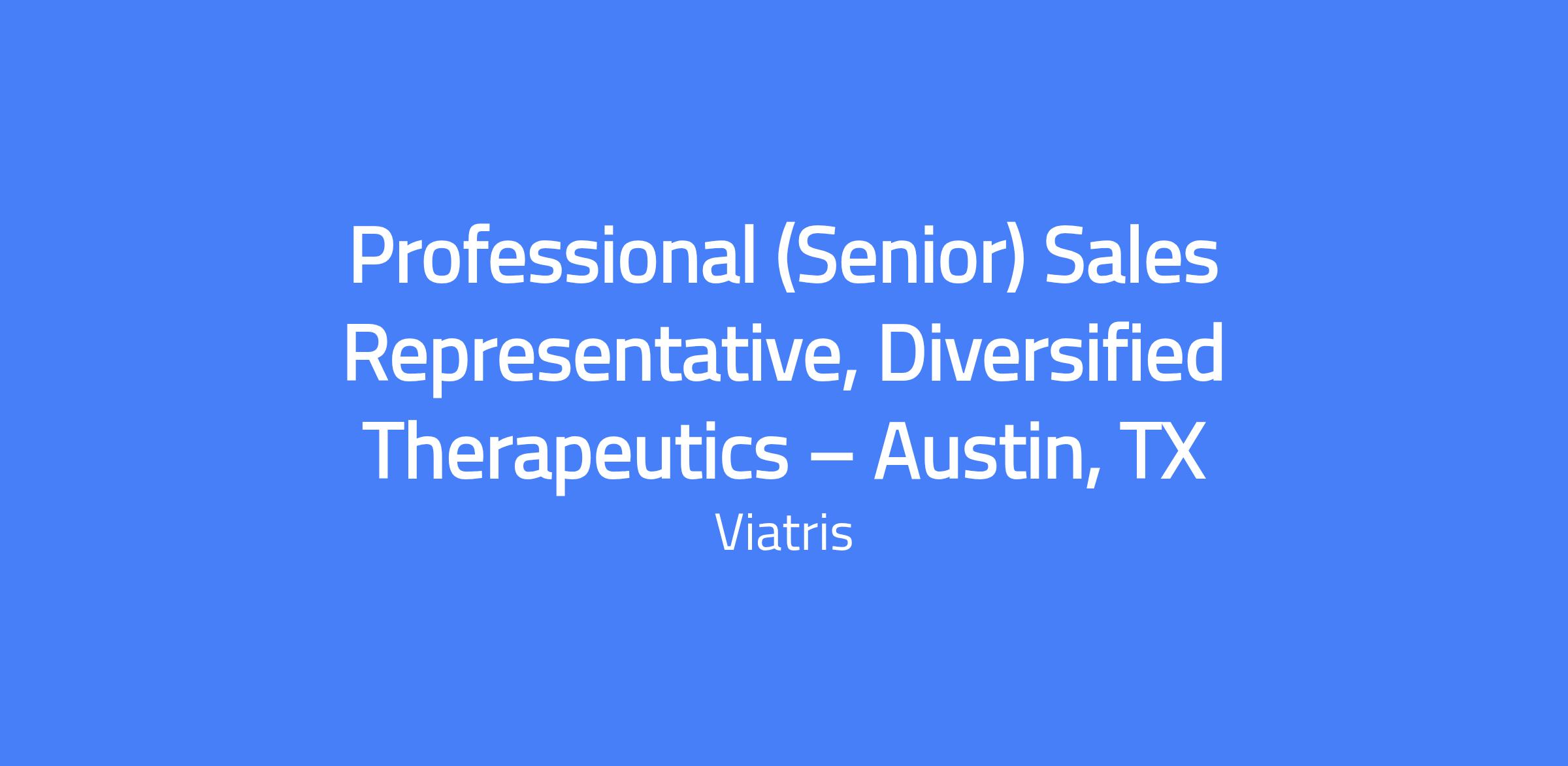 Professional (Senior) Sales Representative, Diversified Therapeutics β Austin, TX