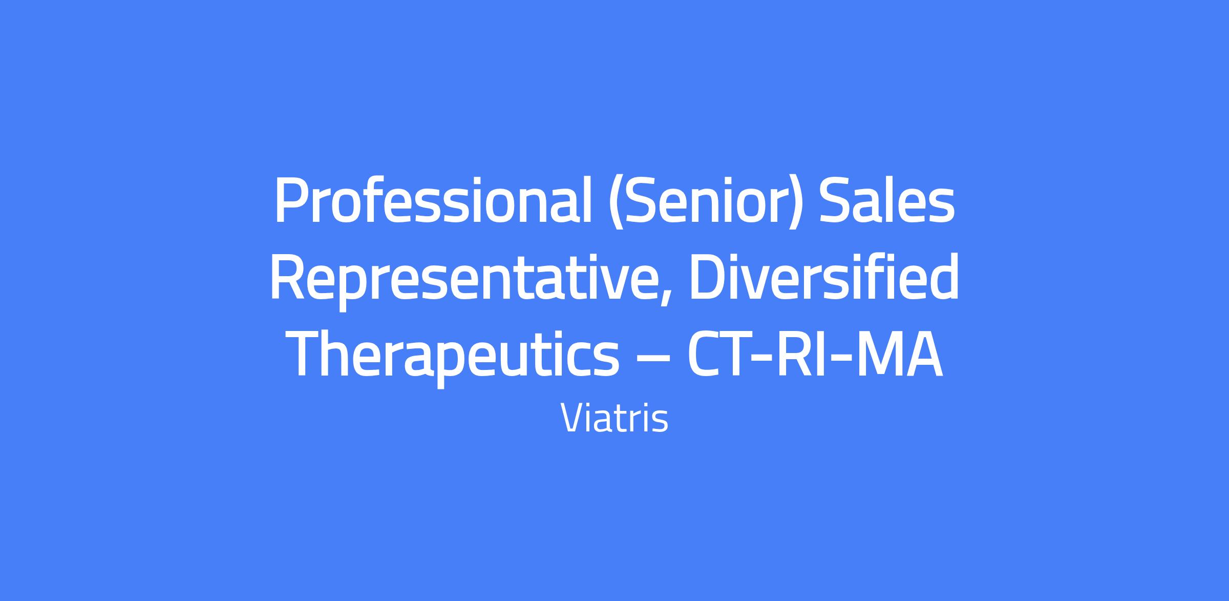 Senior Sales Representative for Diversified Therapeutics in CT-RI-MA, responsible for driving sales of Viatris products to OB-GYNs, nurse practitioners, physician assistants and pharmacists within a defined territory. Develops and executes territory plans, pre- and post-call planning strategies for key targets and accounts, and leverages available assets to raise healthcare professional awareness while adhering to ethical sales practices and regulatory requirements. Travel may be required; strong communication and relationship-building skills are essential to improve patient outcomes.