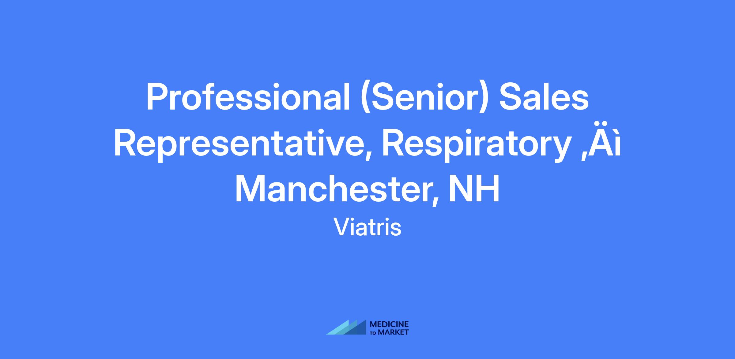 Professional (Senior) Sales Representative, Respiratory – Manchester, NH. Responsible for developing and executing regional sales plans, conducting quality sales presentations, and building strong customer relationships to achieve territory targets in respiratory products.