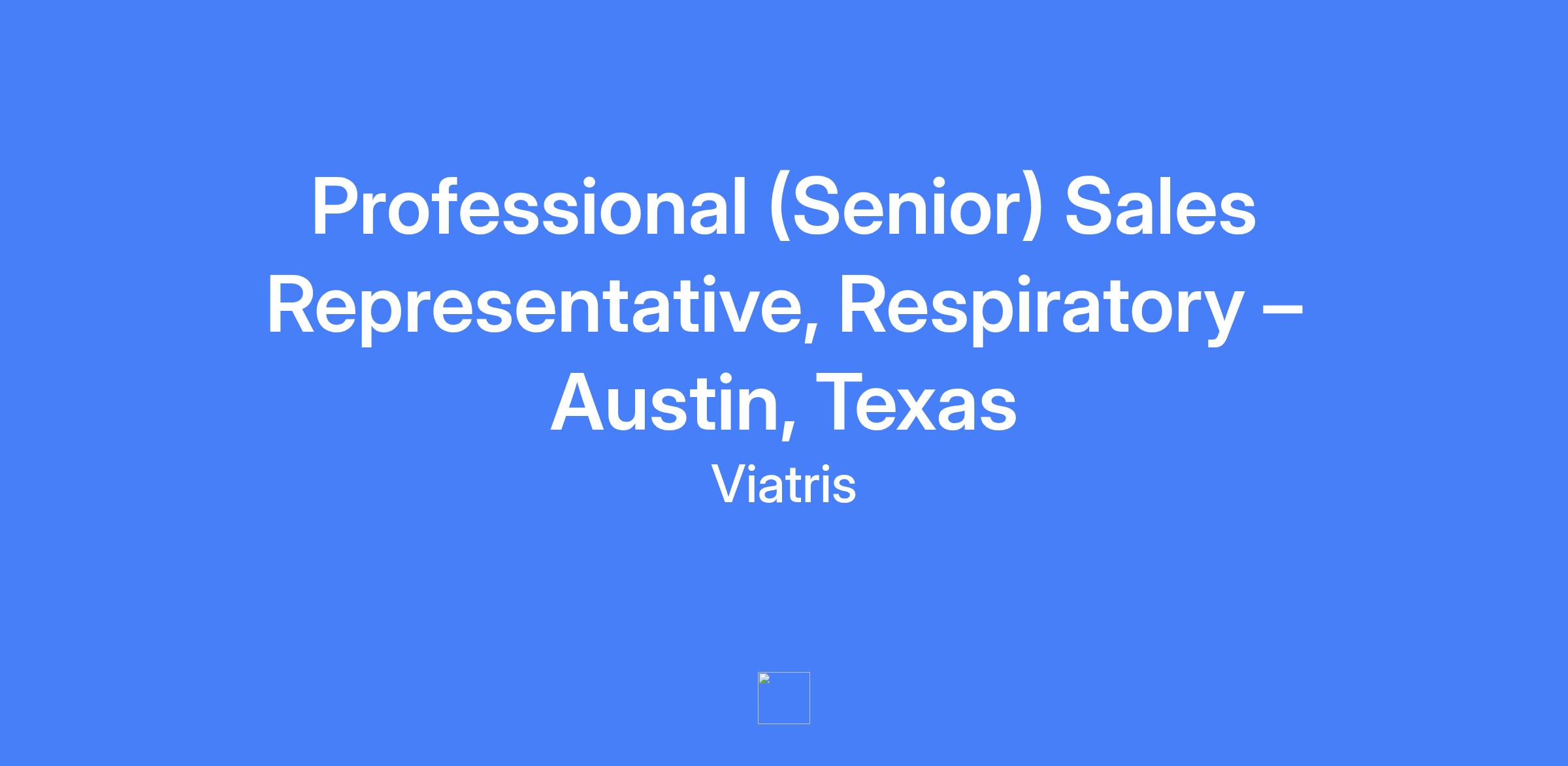 Professional (Senior) Sales Representative, Respiratory β Austin, Texas